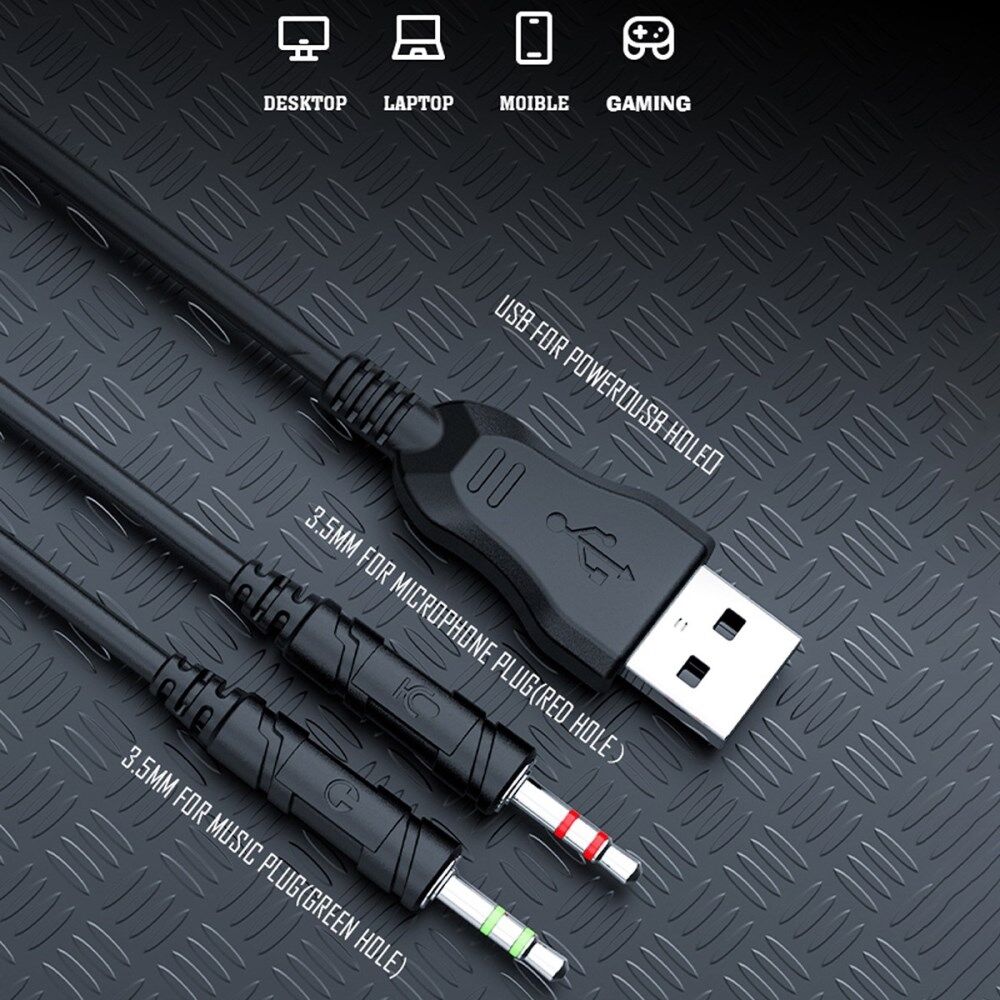BATXELLENT H81 RGB Wired Headset Adjustable Gaming Headphone Noise Canceling Earphone with Mic for PC, Laptops, Mobile Phones - Black