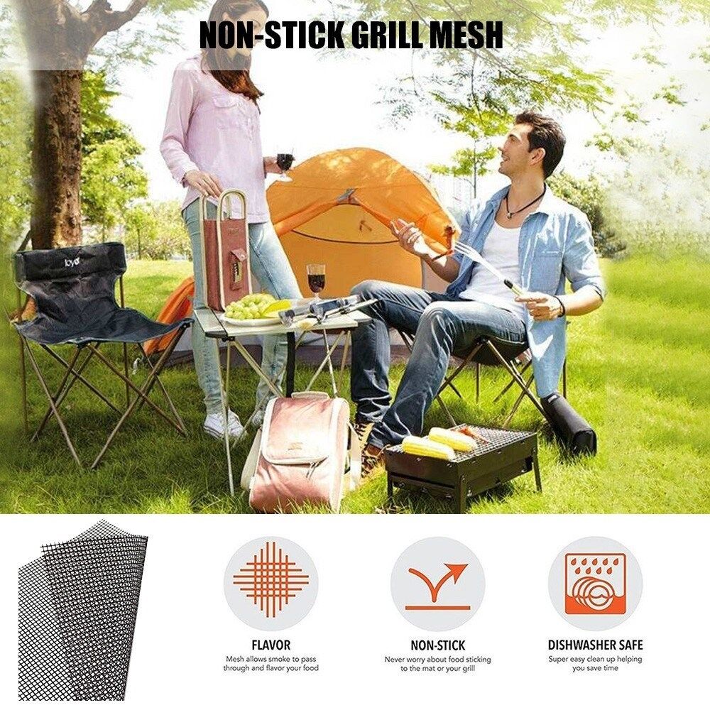 BBQ Grill Mat Non Stick Mesh Heavy Duty Reusable Dishwasher Safe Mesh Fireproof Topper Pad