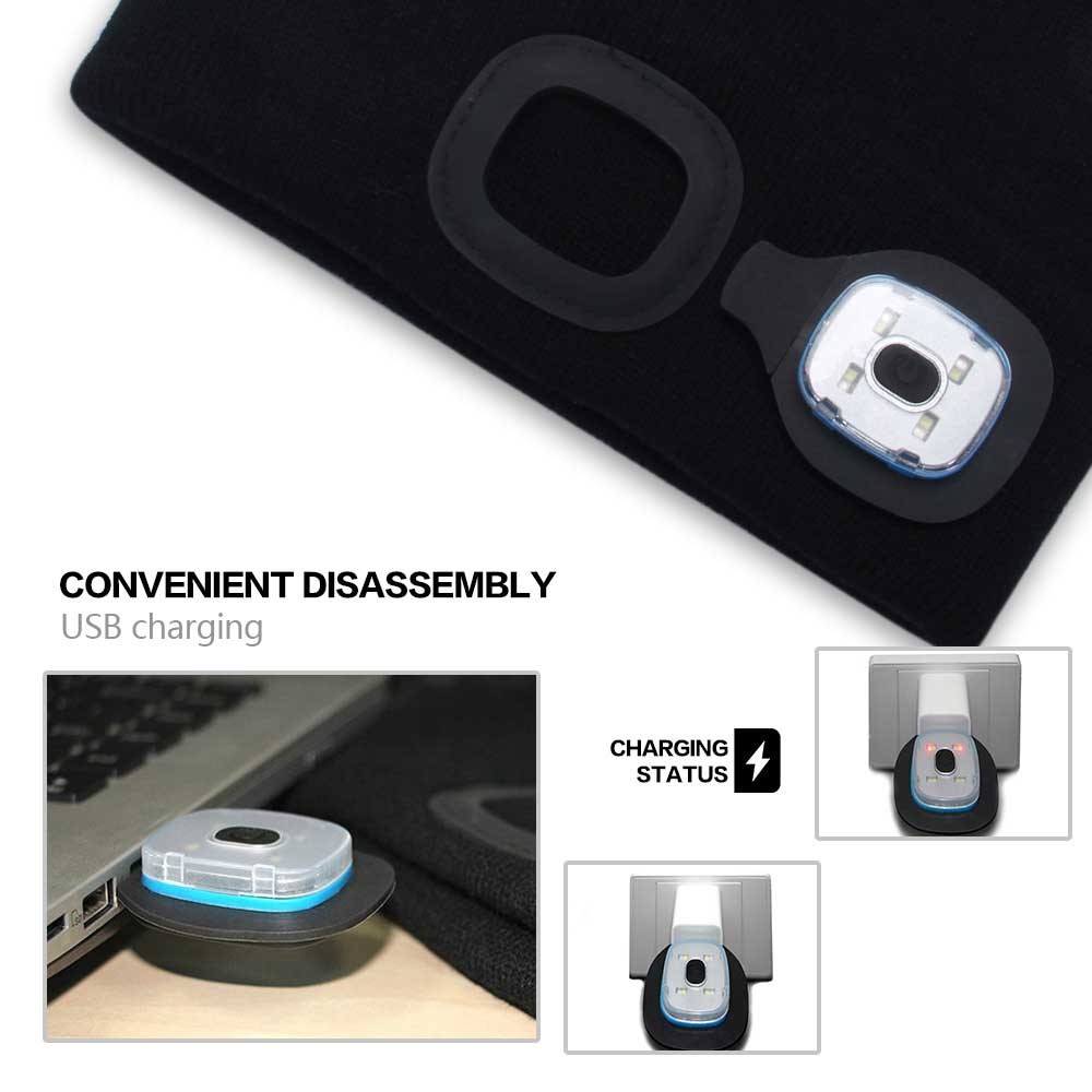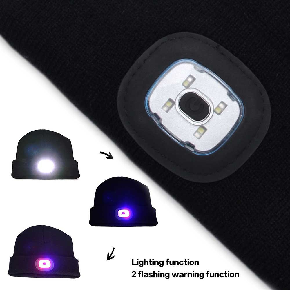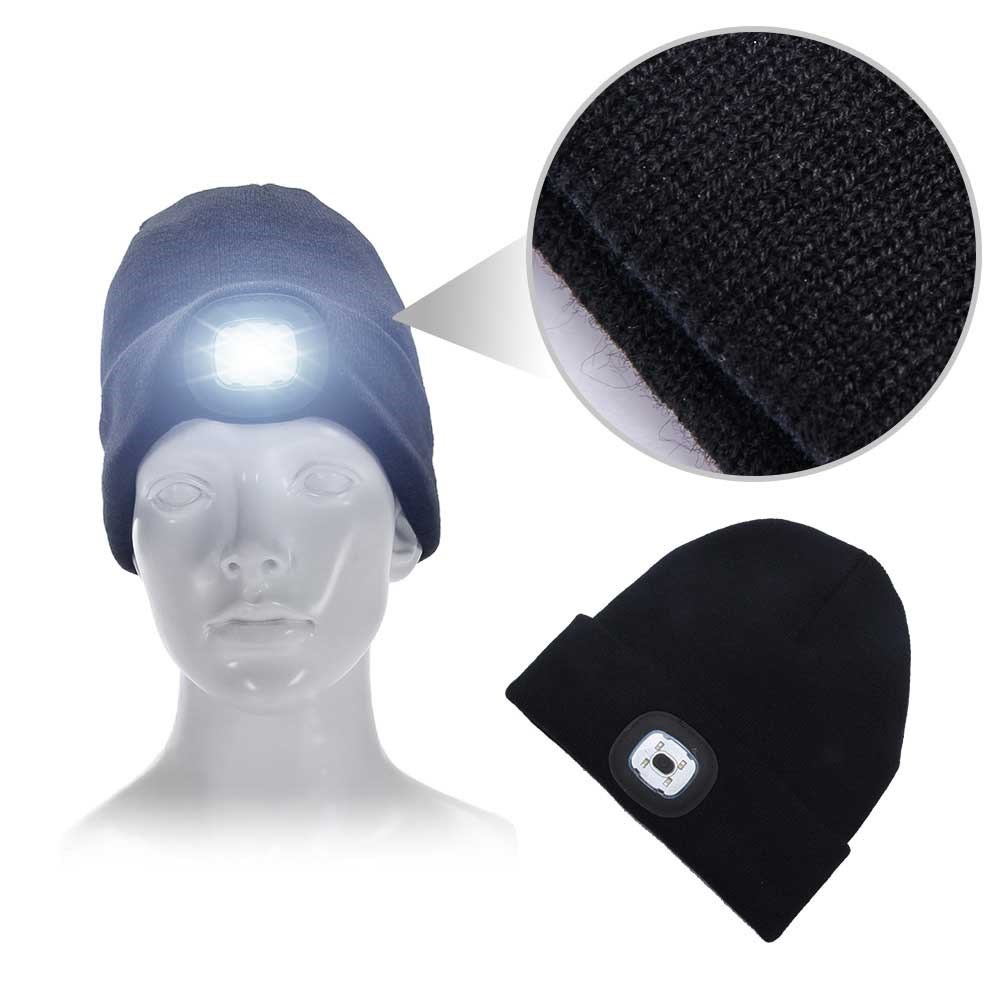 A warm and functional cap with a rechargeable built-in LED lamp.
