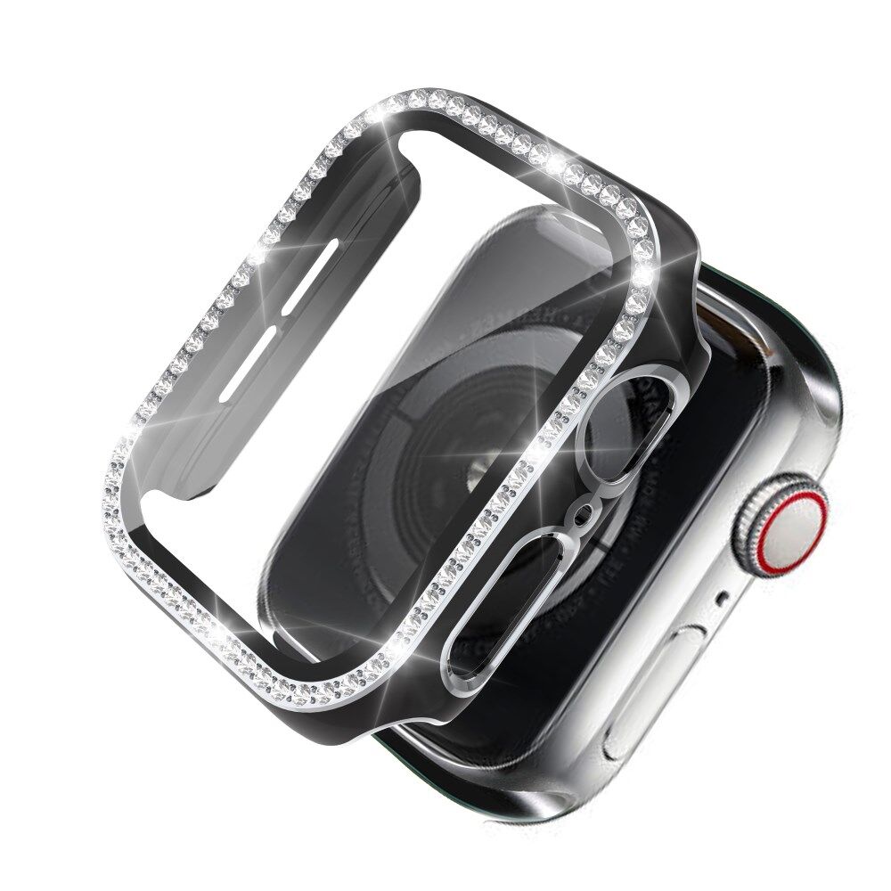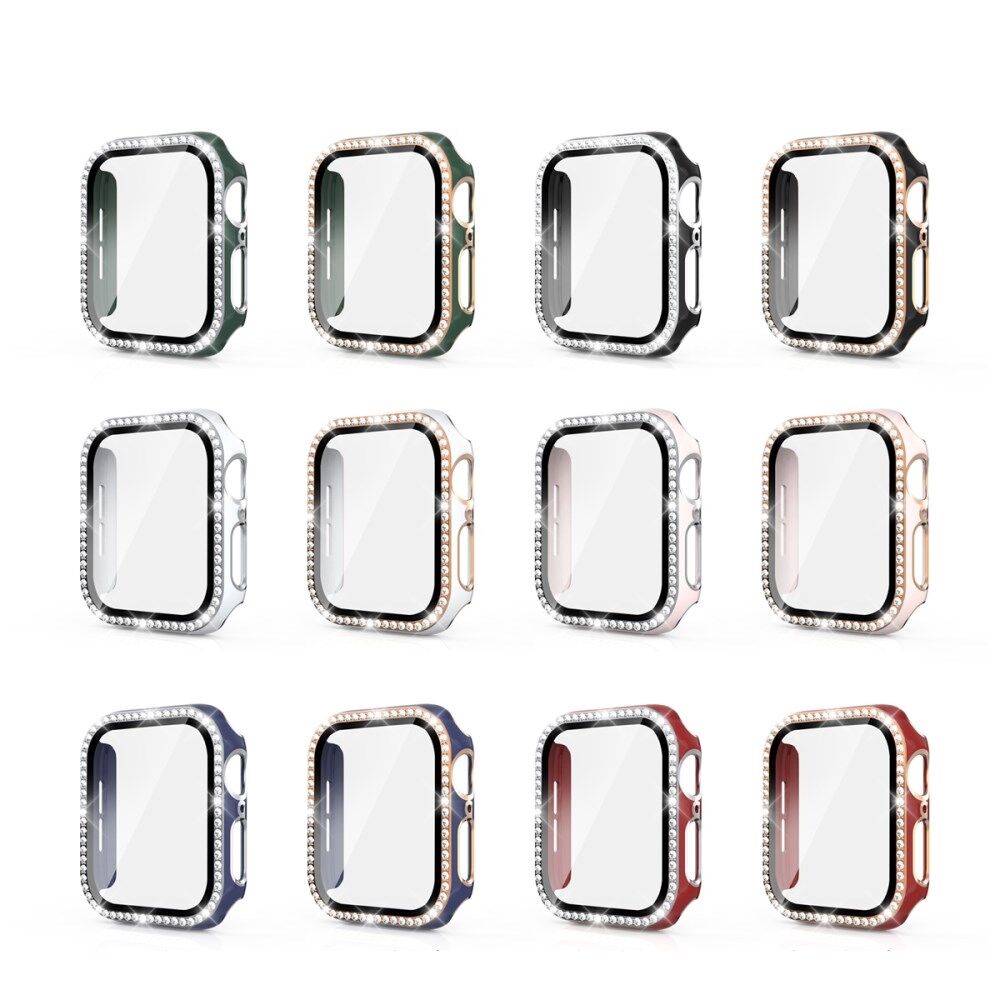 Bi-Color Electroplating Rhinestone Crystal PC Case Cover with Tempered Glass Screen Film for Apple Watch 4/5/6/SE 44mm