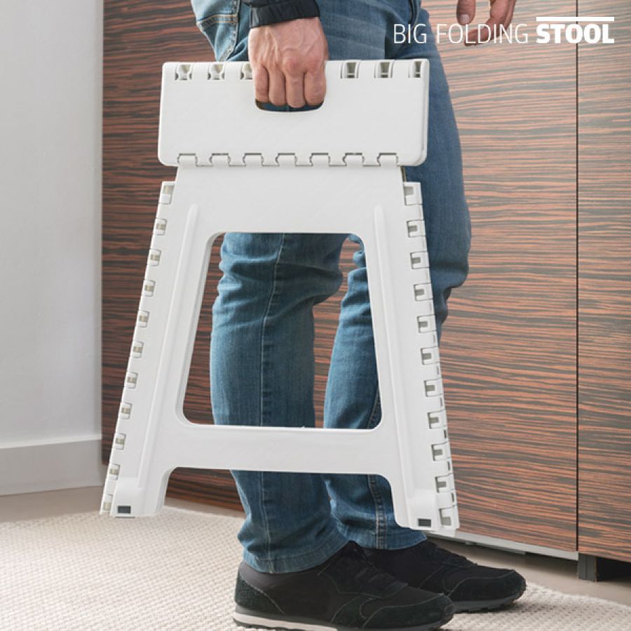 Folded, the stool has handles to easily take where you need it.