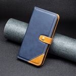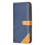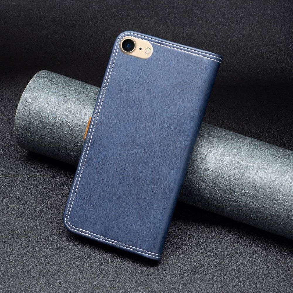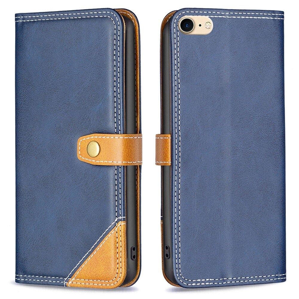BINFEN COLOR BF Leather Series-8 for iPhone 7/8/SE (2020)/SE (2022) 12 Style Foldable Stand Card Slots Splicing Leather Case Double Stitching Lines Phone Cover - Blue