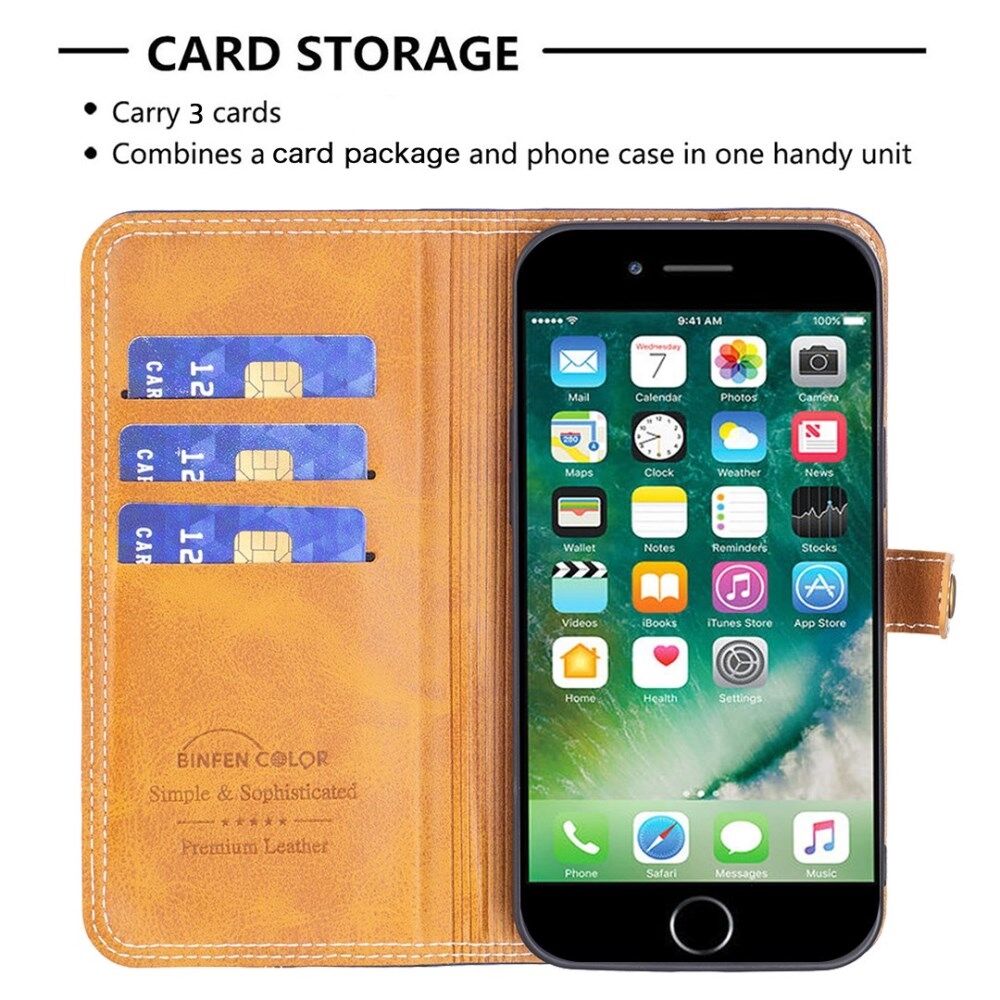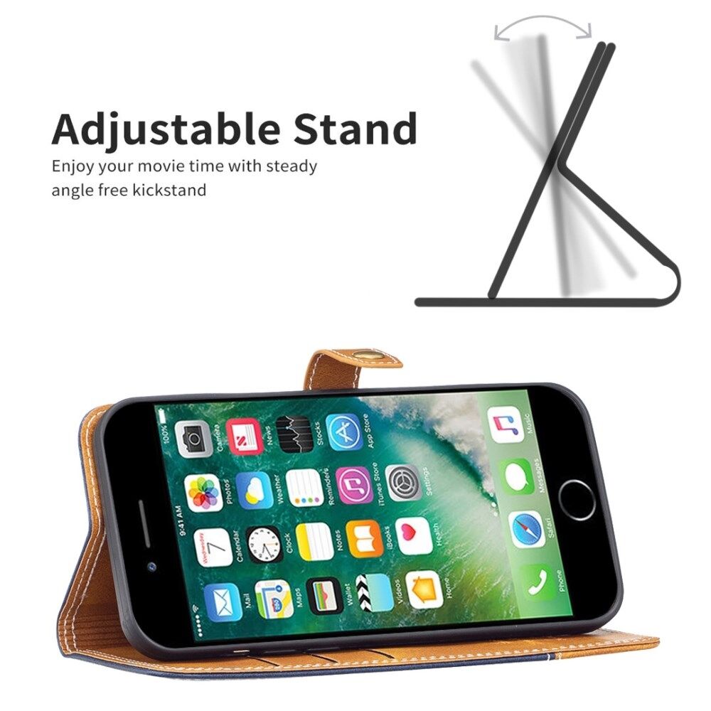 BINFEN COLOR BF Leather Series-8 for iPhone 7/8/SE (2020)/SE (2022) 12 Style Foldable Stand Card Slots Splicing Leather Case Double Stitching Lines Phone Cover