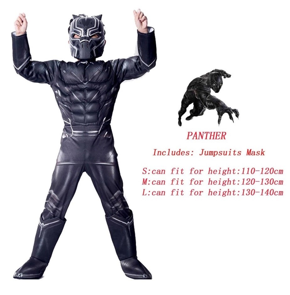 Black Panther Costume Kids - Incl. Mask + Suit - Large - 130-140 cm