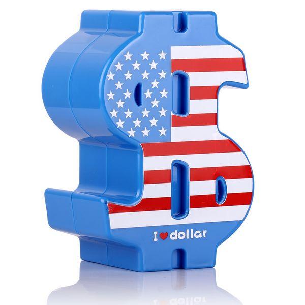Blue Dollar Logo Piggy Bank Plastic Saving Box