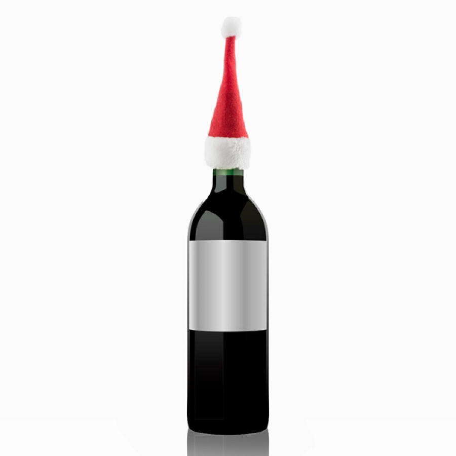 Decoratively, it looks on the Christmas table when the bottles are topped with a Santa cap.
