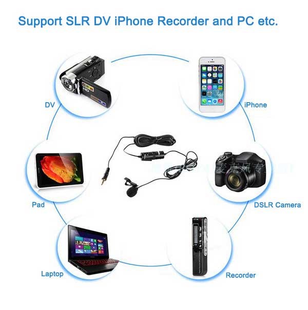 Small in weight - large in sound high quality BOYA Microphone with clips to put on the jacket, shirt or cable for your headphones. Perfect for interviews and filming. Weighing only 2.5 grams and noise-canceling filter, it is small but can deliver clear reproduction of your voice without the noise around you coming along. The microphone is equipped with an extra-long cable of 6 meters, so you can stand further away from the device to be recorded, such as your iPhone, iPad, PC or camcorder.