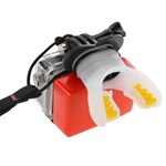 The camera is mounted on the ergonomically designed guard rail and equipped with an elastic strap so you don't lose your camera, even if you forget to bite it together.