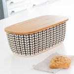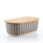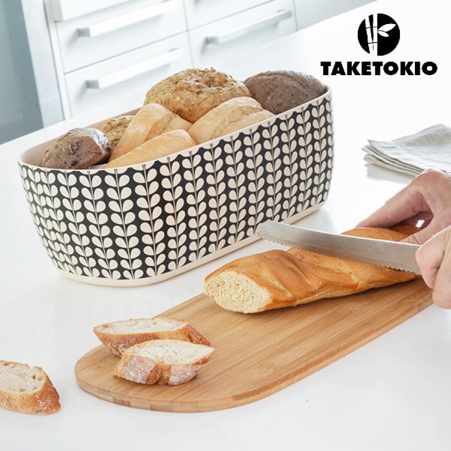 The bread box is in fiber material with a modern pattern.