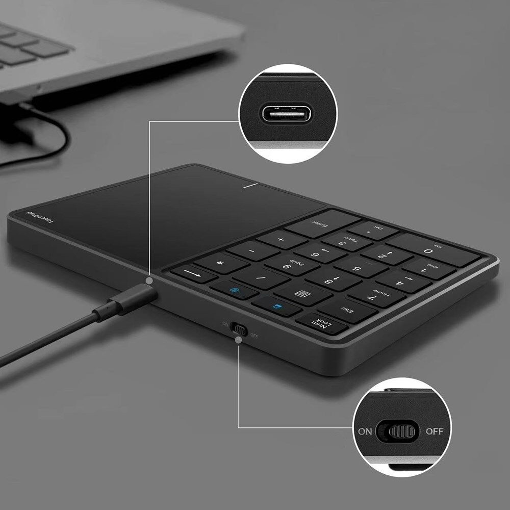 • Bluetooth+2.4G dual-mode numeric keypad with touchpad design
