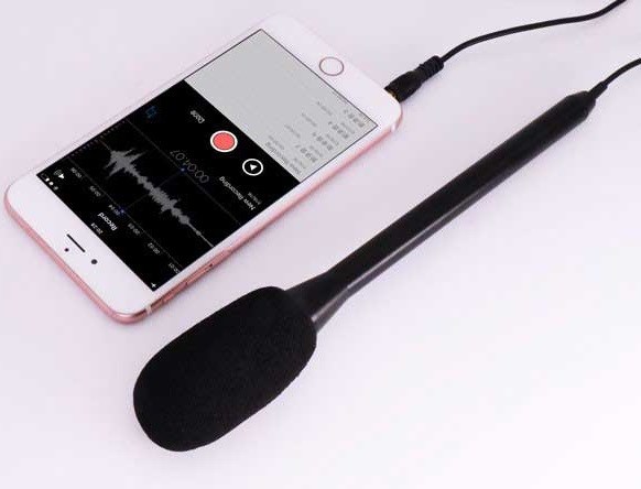 The microphone has 3 meters of cable that you plug into the jack of the device you want to record. It could be your iPhone, iPad, PC or any other device with jack plugs. The design is simple and classic in Rosa Gold, and good quality with a noise canceling filter that gives clear reproduction of your voice without the noise around you coming along.