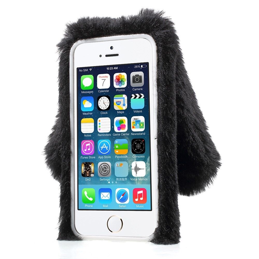 Bunny Shape Warm Fur TPU Case for iPhone SE 5S 5 - Black