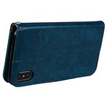 Business Style Leather Case for iPhone XS Max with Card Holder and Strap - Blue
