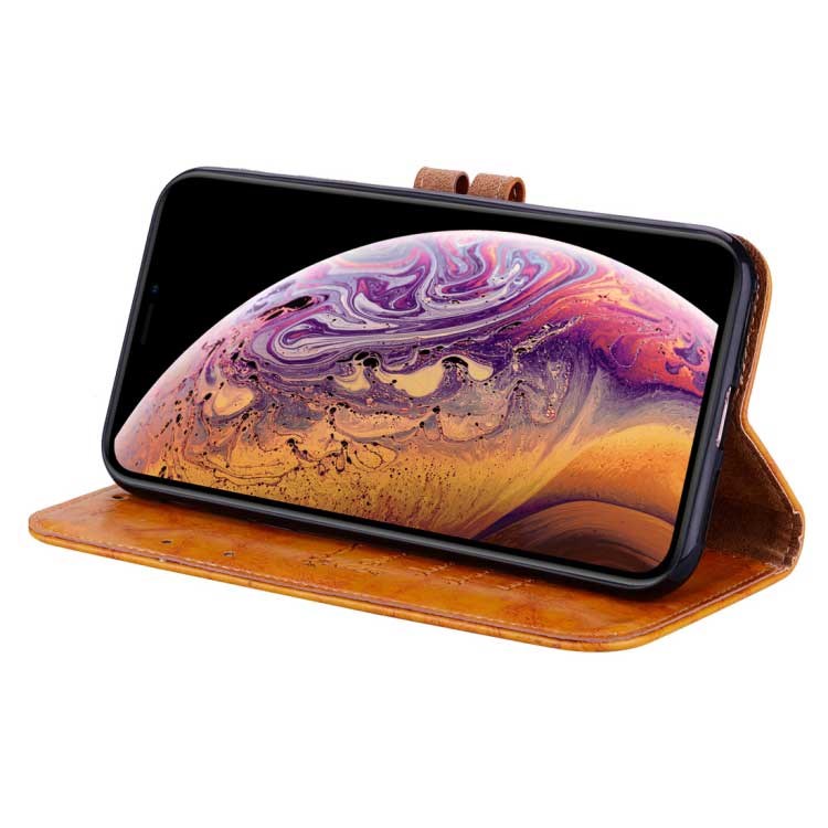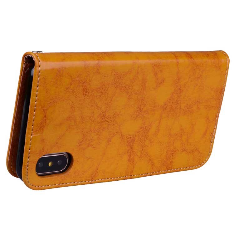 Business Style Leather Case for iPhone XS Max with Card Holder and Strap - Yellow