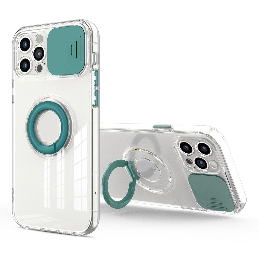 Camera Slide Anti-fall Protective Back Case Cover with Kickstand for iPhone 12 Pro Max 6.7 inch - Dark Green
