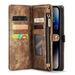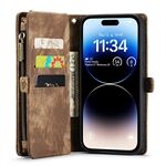 CASEME 008 Series Drop-Proof Multi-Function Wallet TPU + Split Leather 2-in-1 Phone Stand Shell for iPhone 13 Pro 6.1 inch - Brown