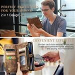 Made of retro style genuine split leather + TPU materials, high quality and durability. Detachable 2-in-1 design, leather cover and inner leather coated TPU hard case absorb together by strong magnetism. Multiple wallet card slots for bringing your credit cards and bus cards conveniently. Zipper closure cash compartment, carry some money or your earphone with phone securely. Magnetic closure and snap-fastener add the secure level. Guard your phone against daily damage and carry your belongings in style.