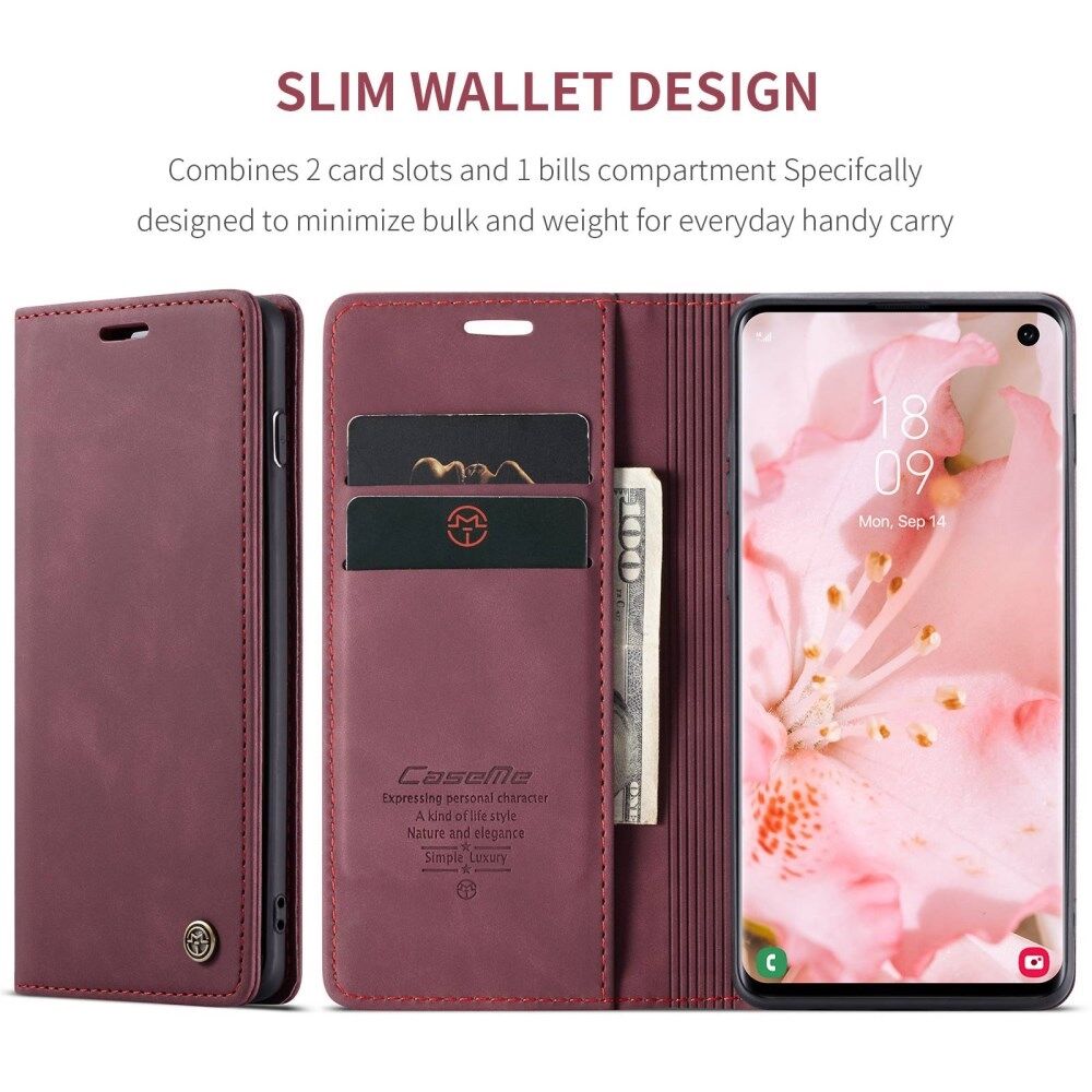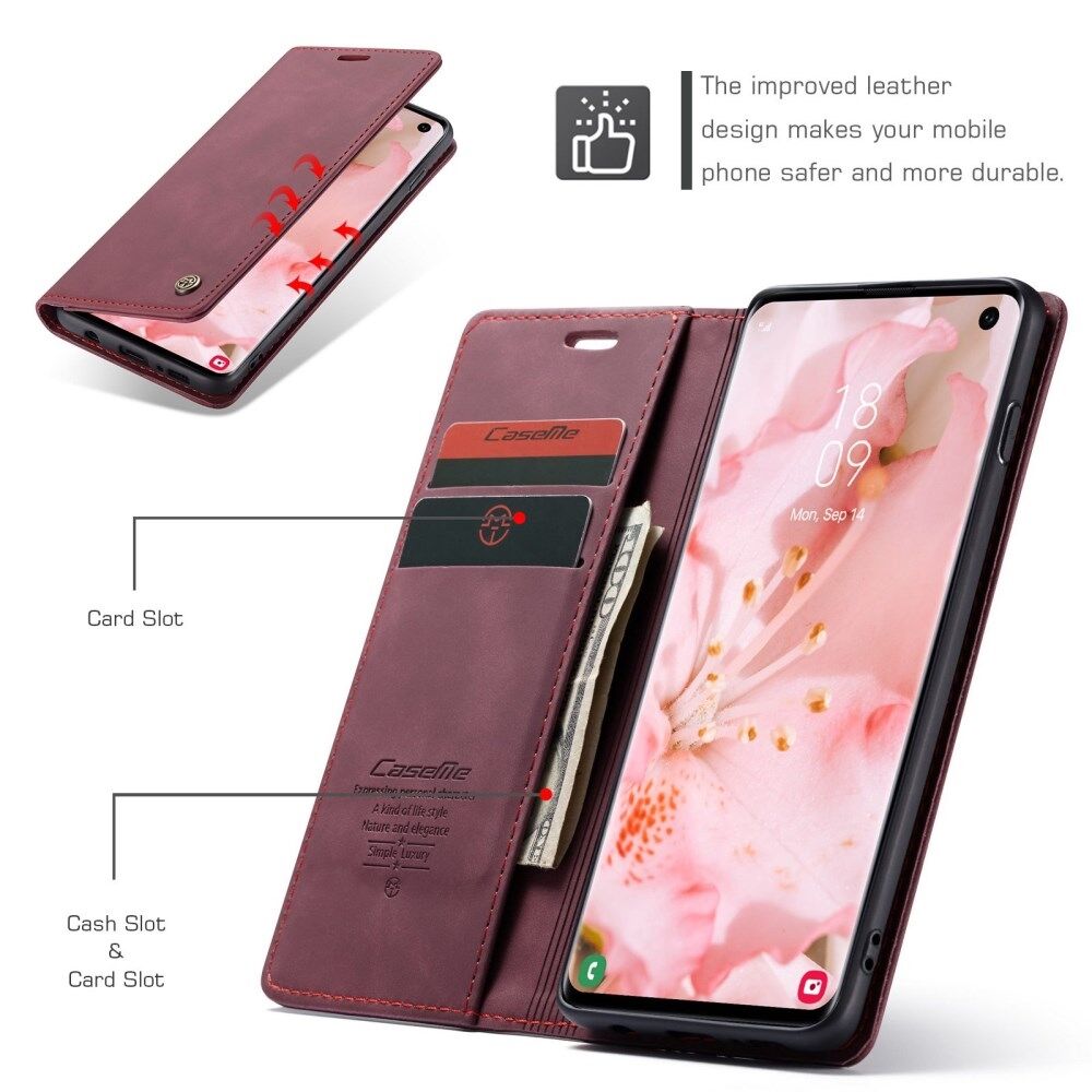 CASEME 013 Series for Samsung Galaxy S10 PU Leather Cover [Auto-absorbed] [Wallet Stand] - Red