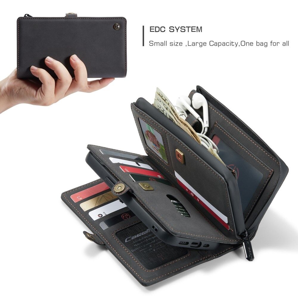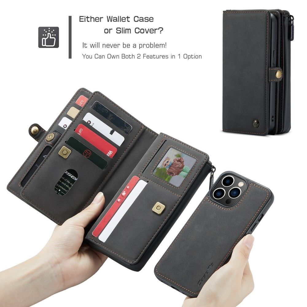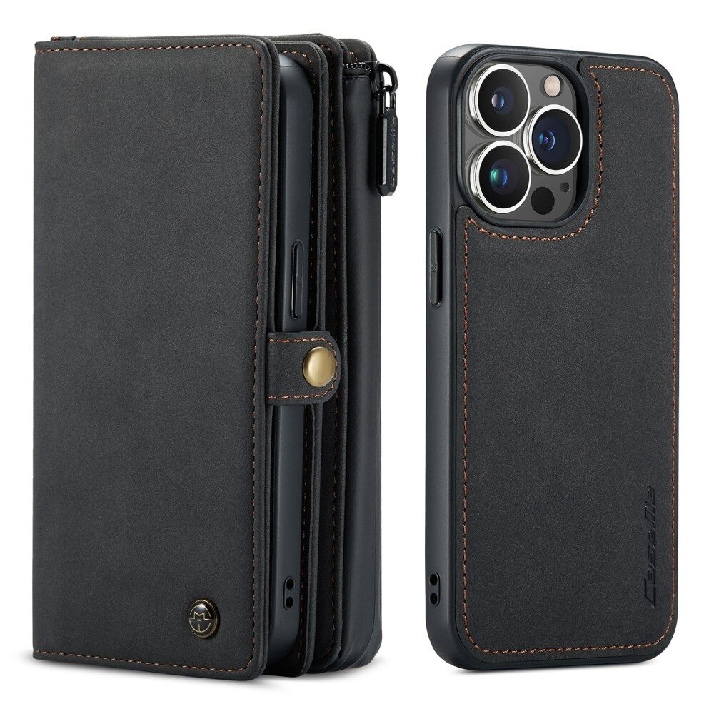 CASEME 018 Series Multi-Slot Design Matte Surface Wallet Stand Leather 2-in-1 Detachable Phone Cover Case for iPhone 13 Pro 6.1 inch - Black