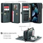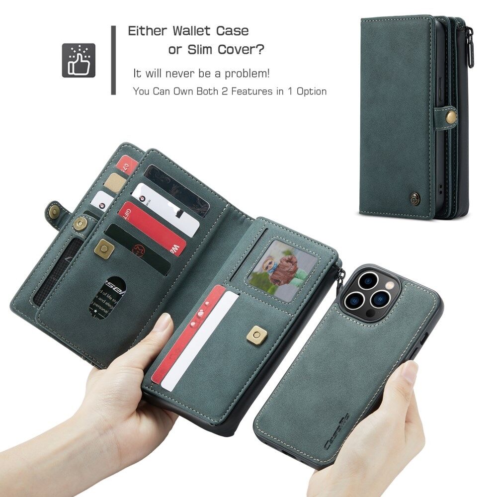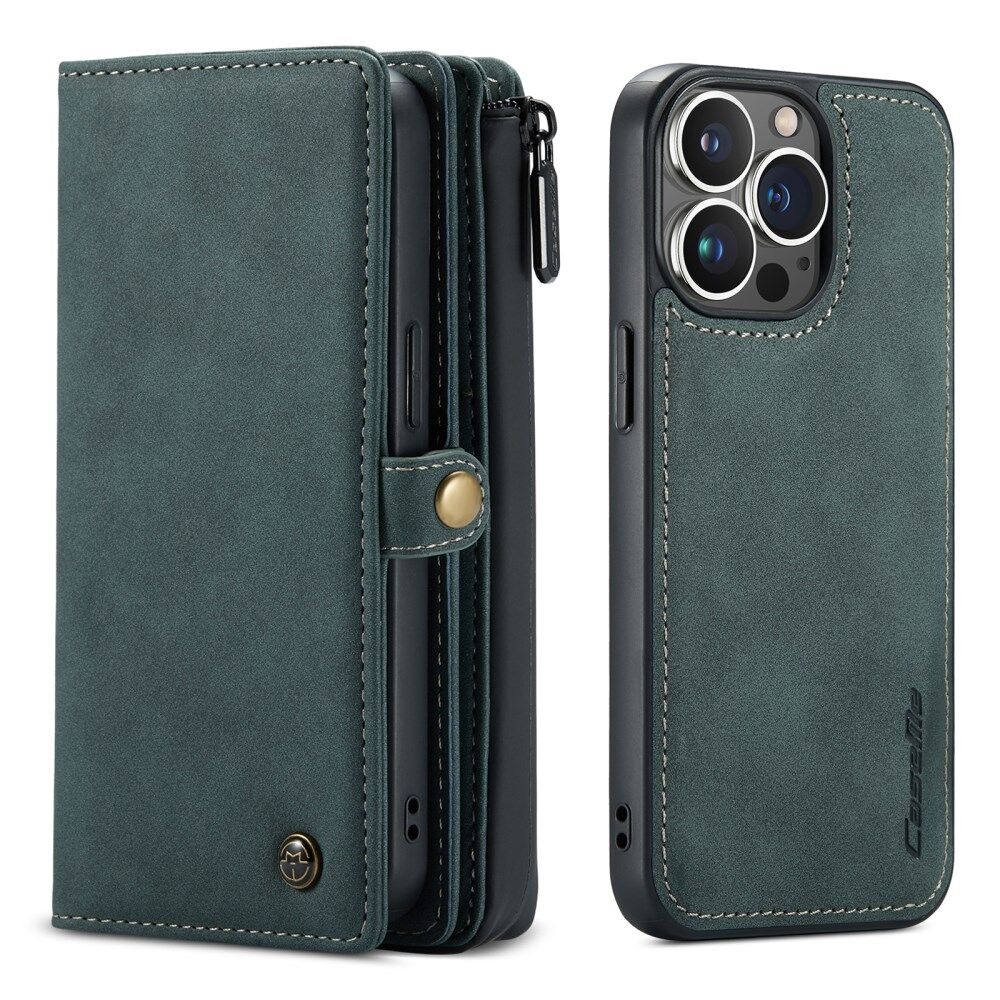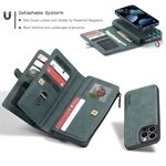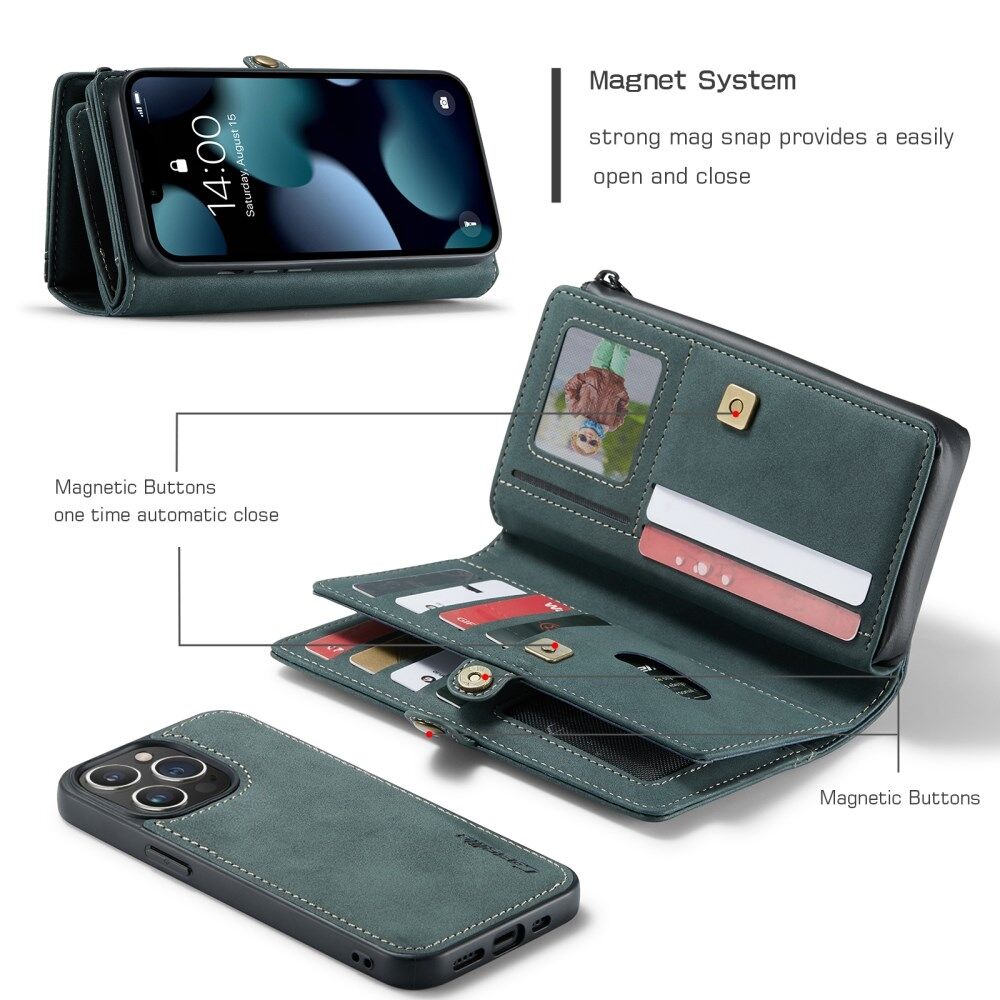 CASEME 018 Series Multi-Slot Design Matte Surface Wallet Stand Leather 2-in-1 Detachable Phone Cover Case for iPhone 13 Pro 6.1 inch - Green