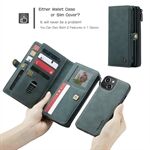 CASEME 018 Series Matte Surface Multi-Slot Design Leather Wallet Stand 2-in-1 Detachable Mobile Phone Cover Case for iPhone 13 mini 5.4 inch - Green