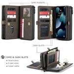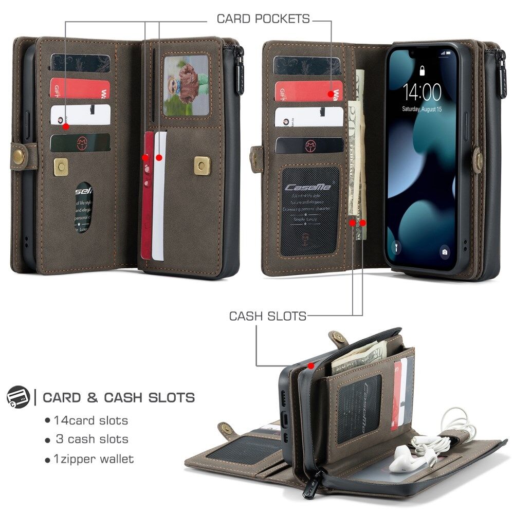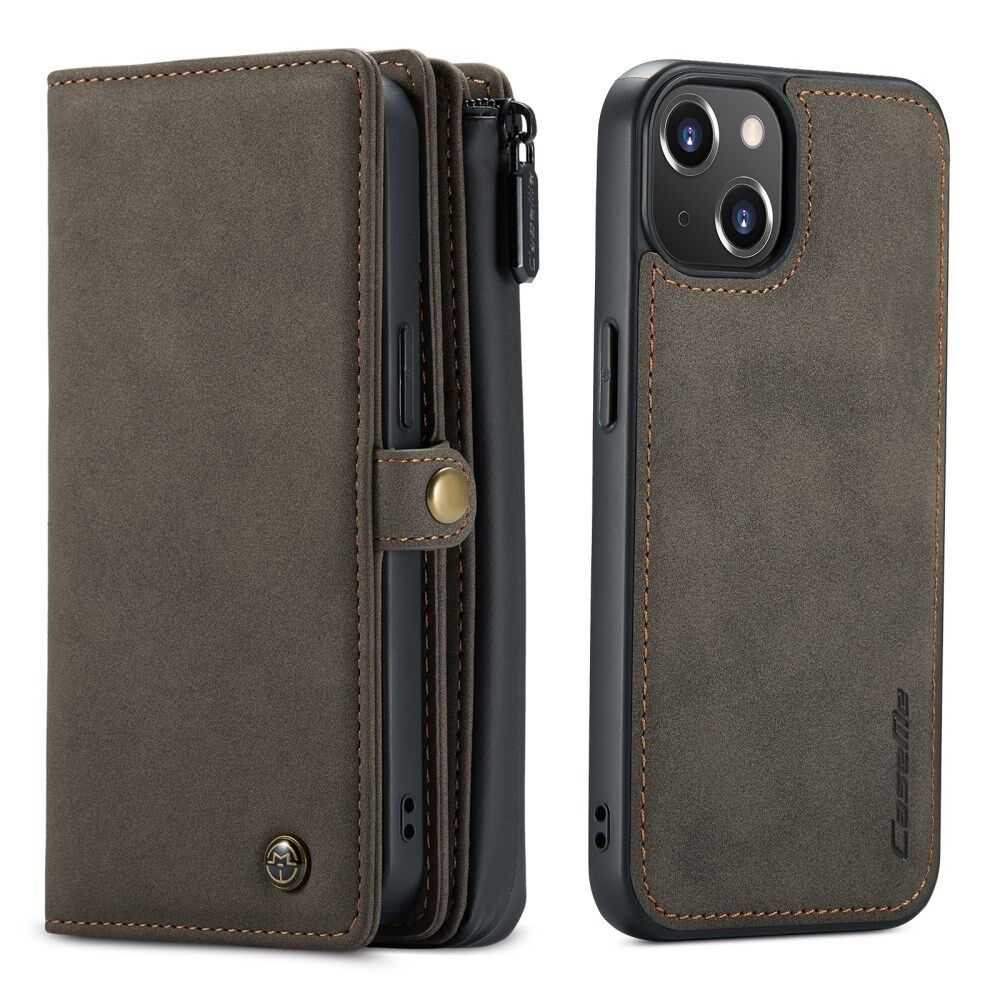 CASEME 018 Series Matte Surface Multi-Slot Design Leather Wallet Stand 2-in-1 Detachable Mobile Phone Cover Case for iPhone 13 mini 5.4 inch - Brown