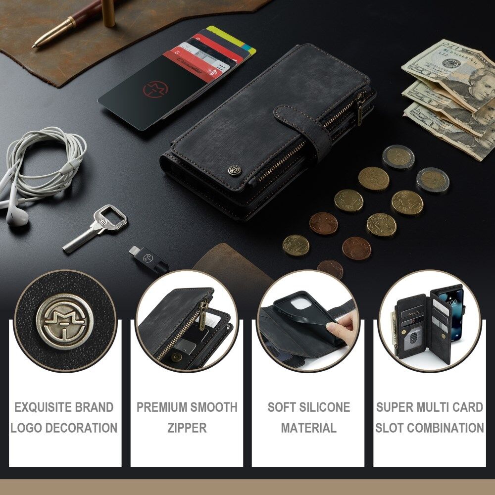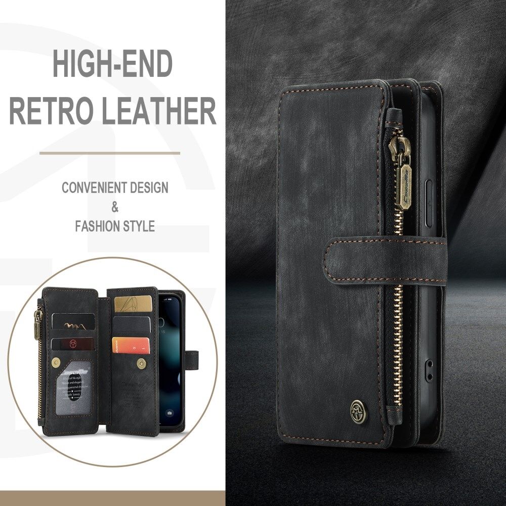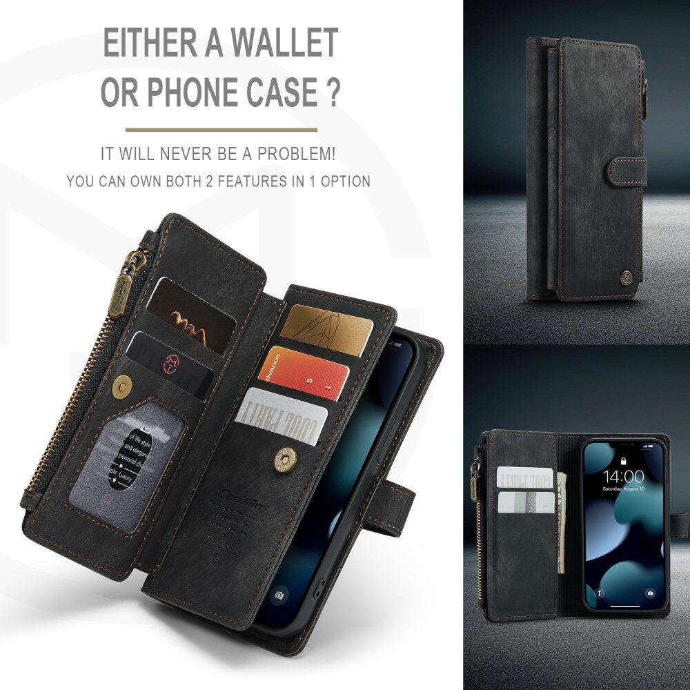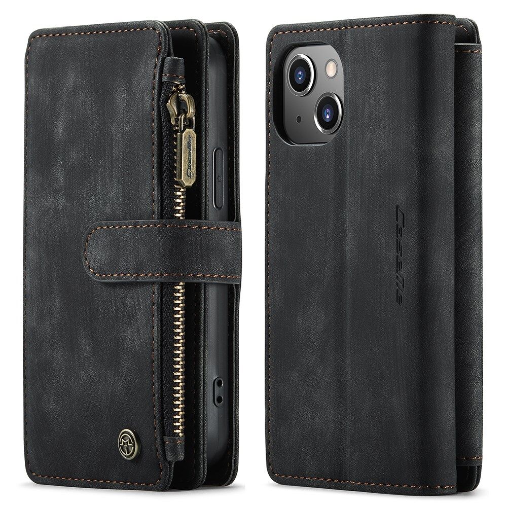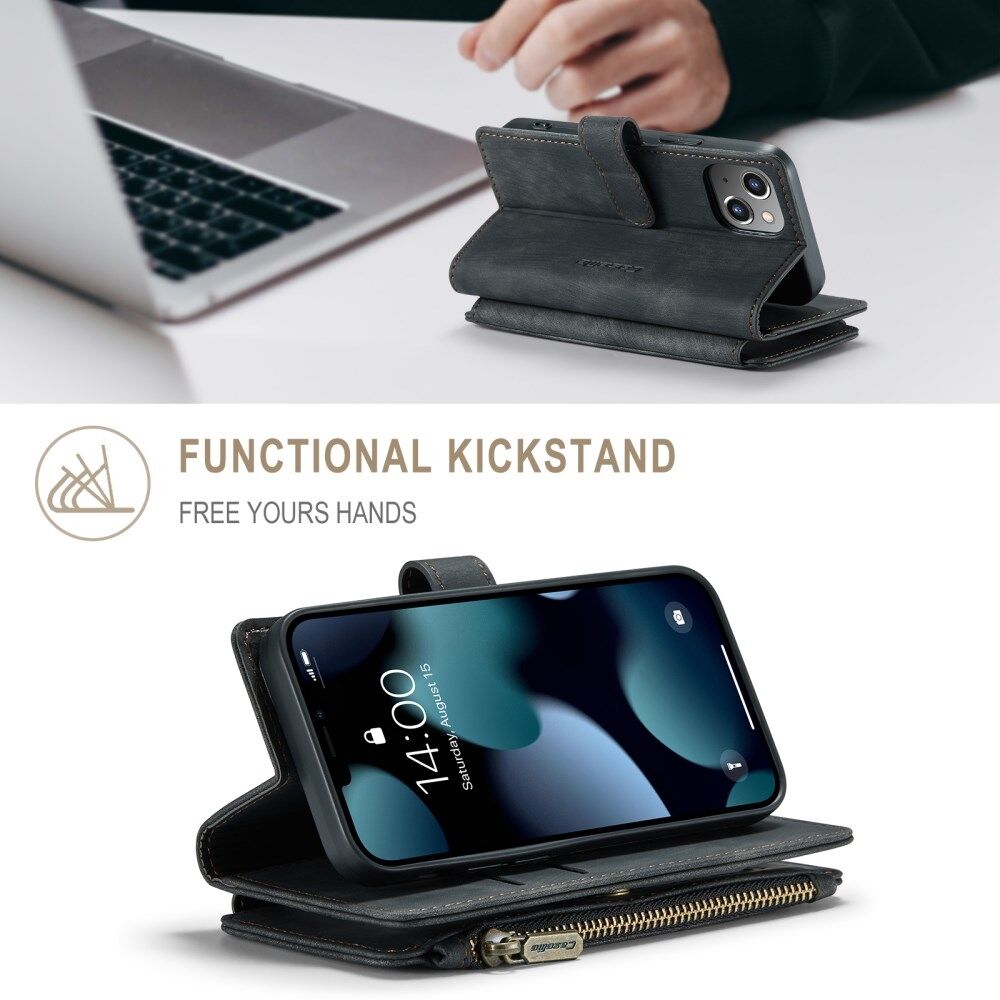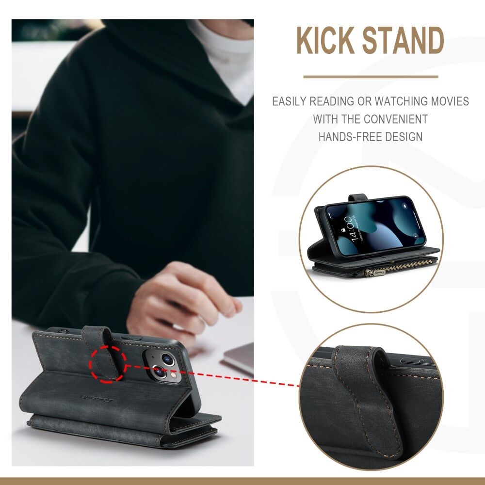 CASEME C30 Series For iPhone 13 mini 5.4 inch Supporting Stand Design Zipper Pocket Shockproof PU Leather TPU Wallet Cover Flip Case Phone Case - Black