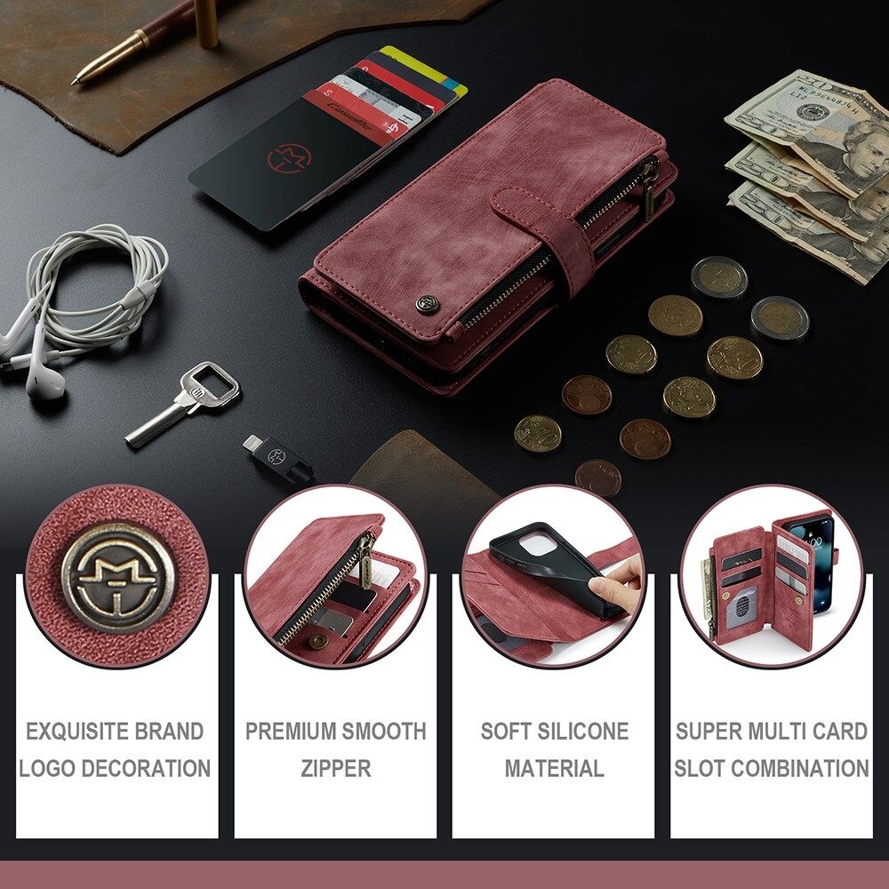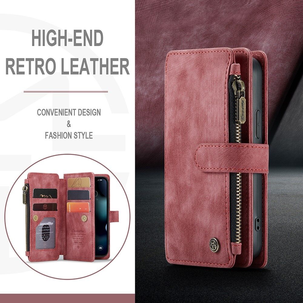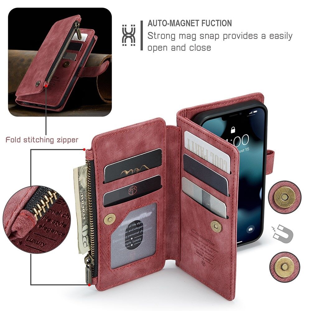 CASEME C30 Series For iPhone 13 mini 5.4 inch Supporting Stand Design Zipper Pocket Shockproof PU Leather TPU Wallet Cover Flip Case Phone Case - Red