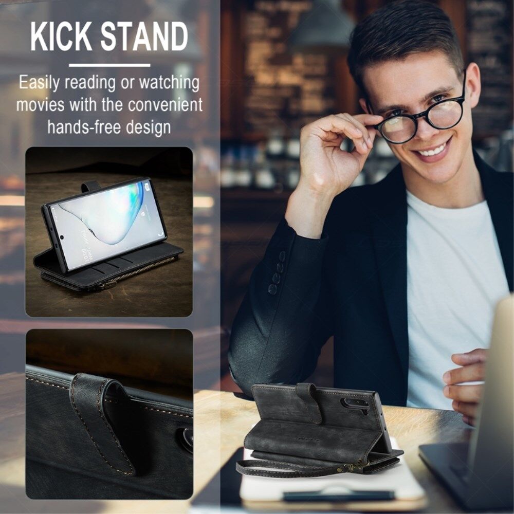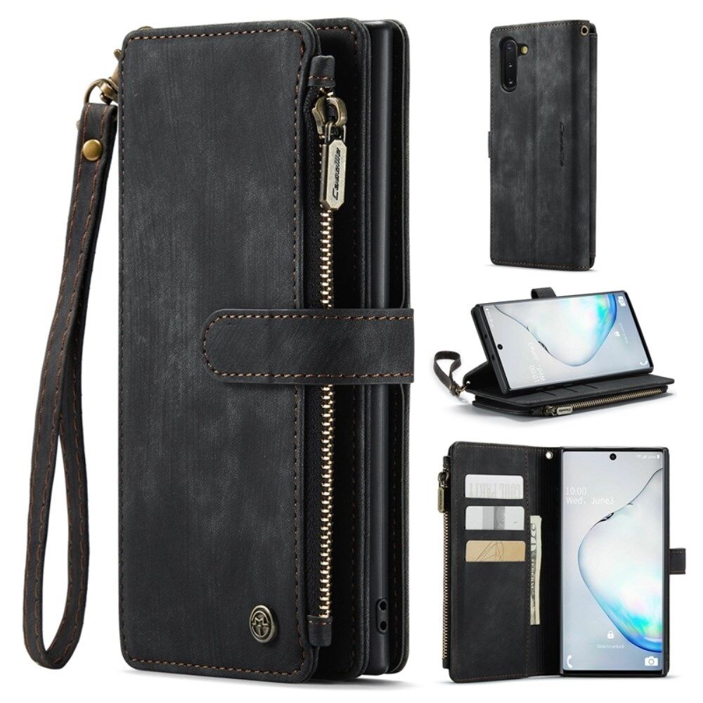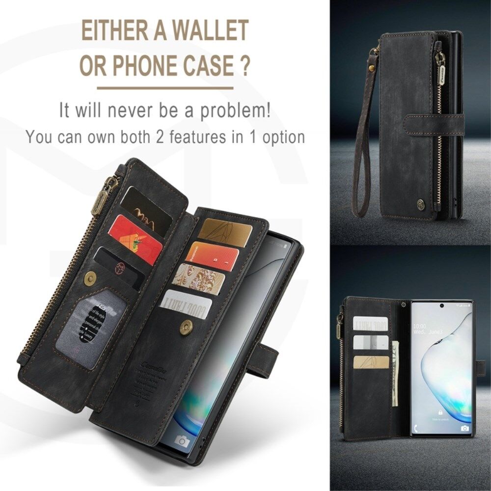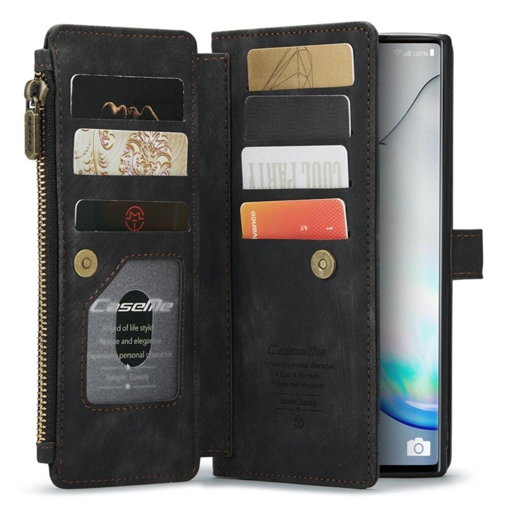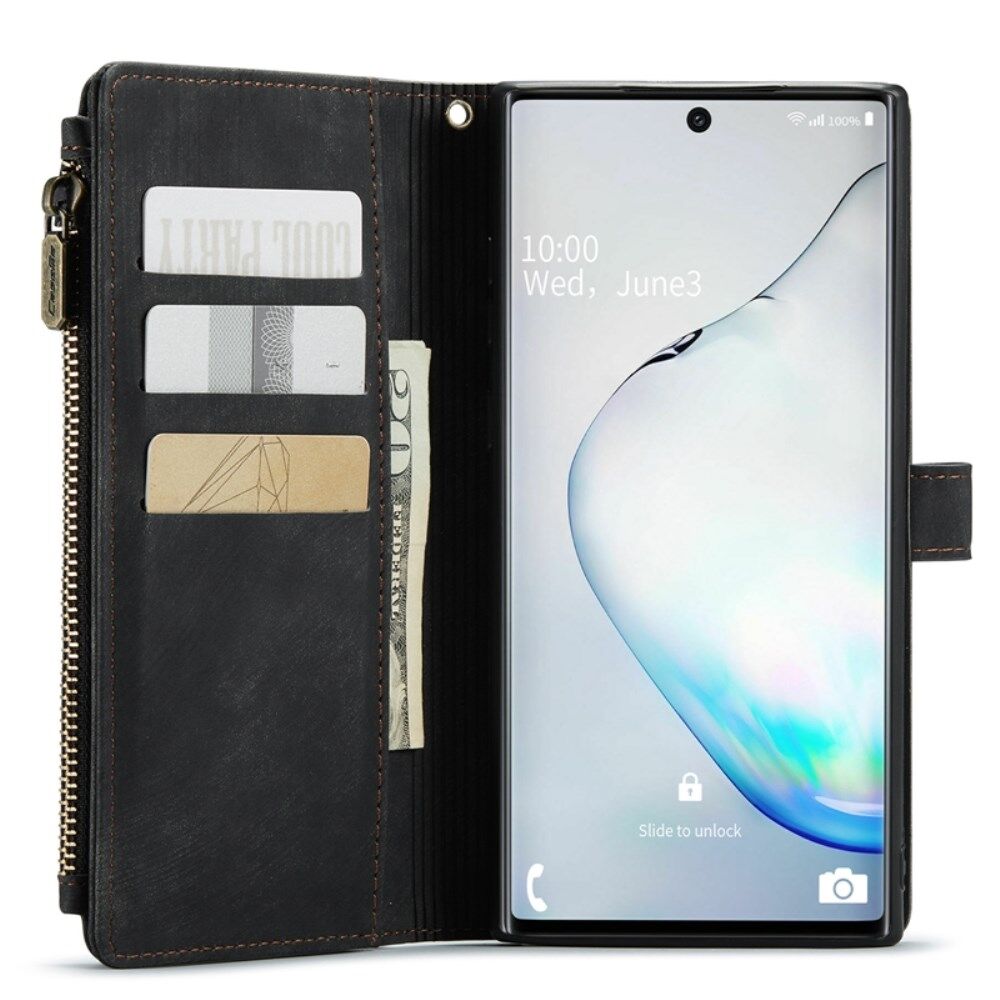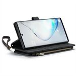 CASEME C30 Series for Samsung Galaxy Note 10 5G / 4G Anti-fall Zipper Pocket Wallet Cover with Strap Auto-Magnetic Stand Phone Flip Leather Case Card Holder - Black