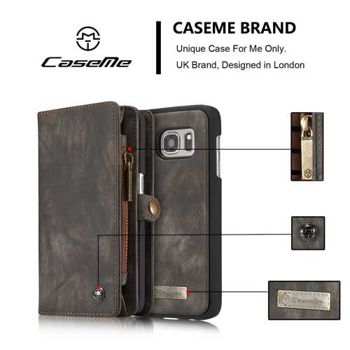 CaseMe Flap Wallet for Samsung Galaxy S7 - Gray Brown