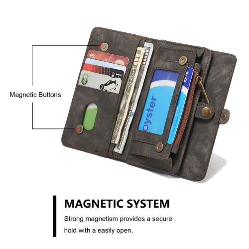 Here you actually have room for everything you need in everyday life and with a flip-tag you can take your mobile out of your wallet, as the cover that holds your phone is stuck with strong magnet.