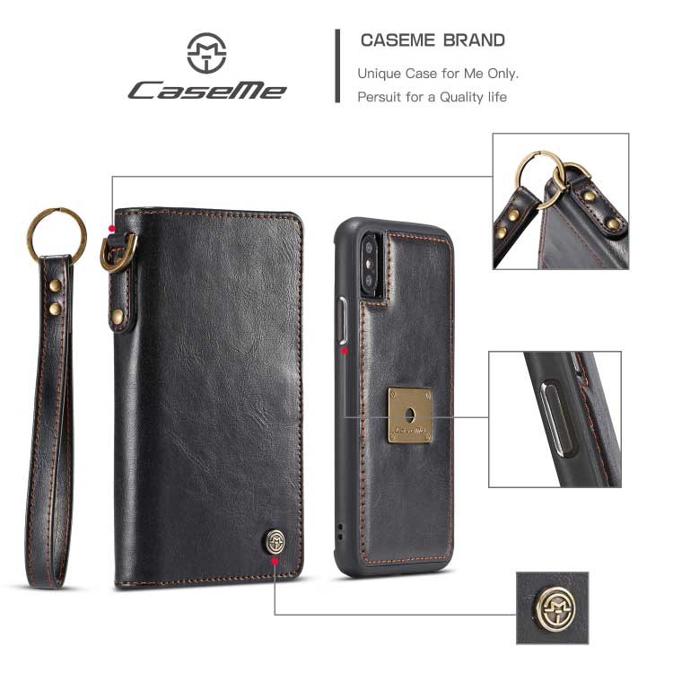 CaseMe leather wallet case for iPhone XS Max with card holder and strap