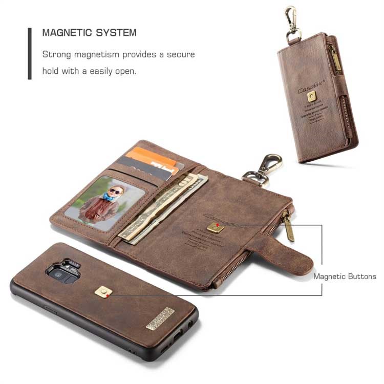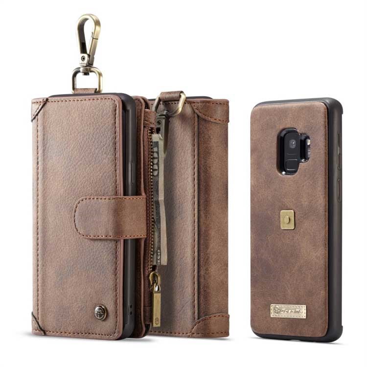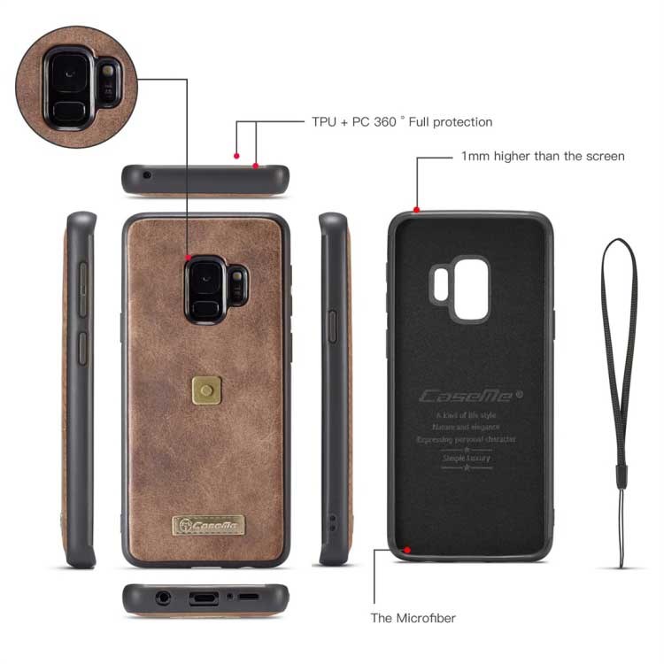CaseMe Multifunction Wallet w / Plastic Magnetic Cover for Samsung Galaxy S9 - Brown