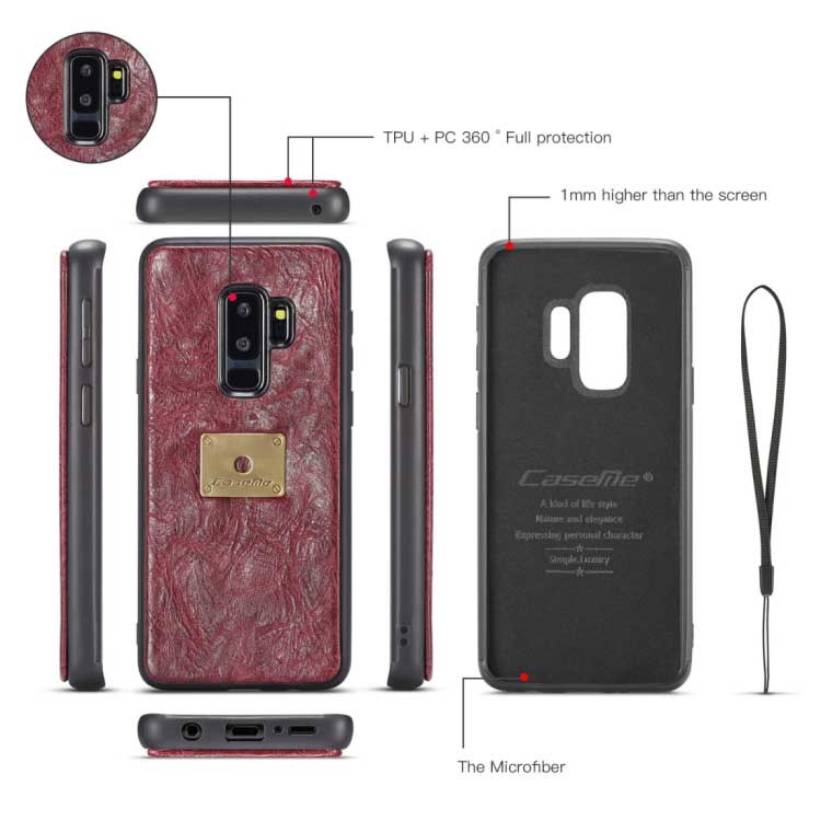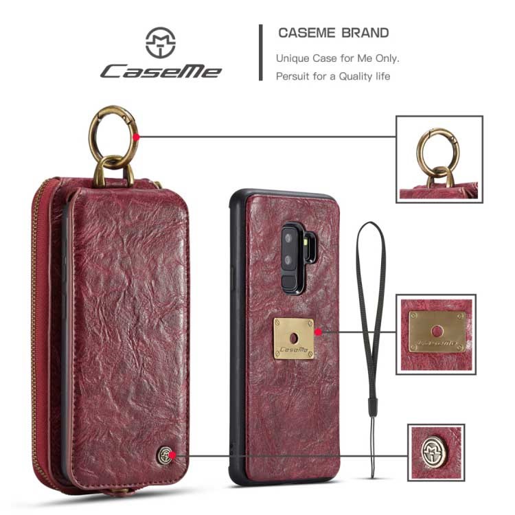 CaseMe Premium Leather Wallet with Magnetic Cover for Samsung Galaxy S9 Plus - Red