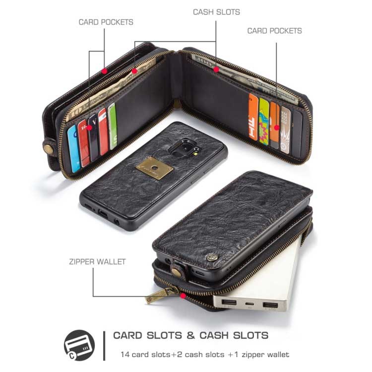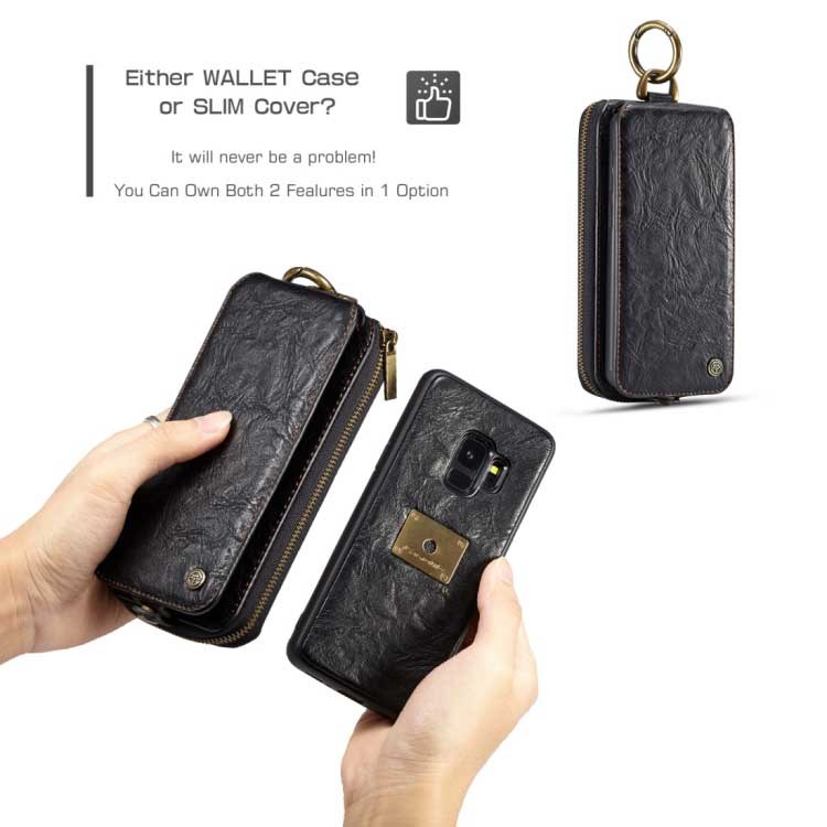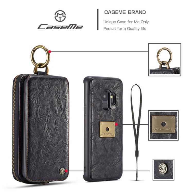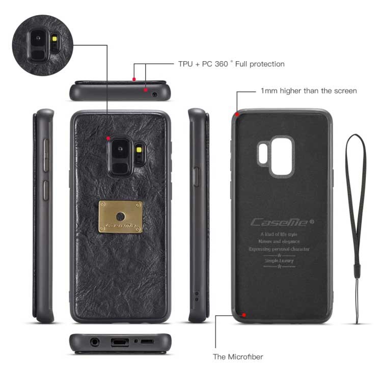 CaseMe Premium Leather Wallet with Magnetic Cover for Samsung Galaxy S9 - Black