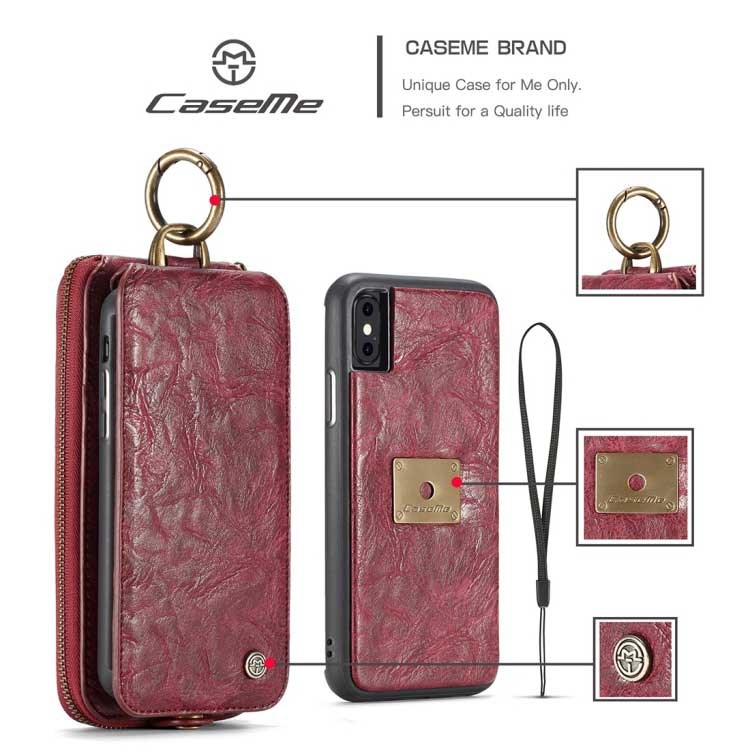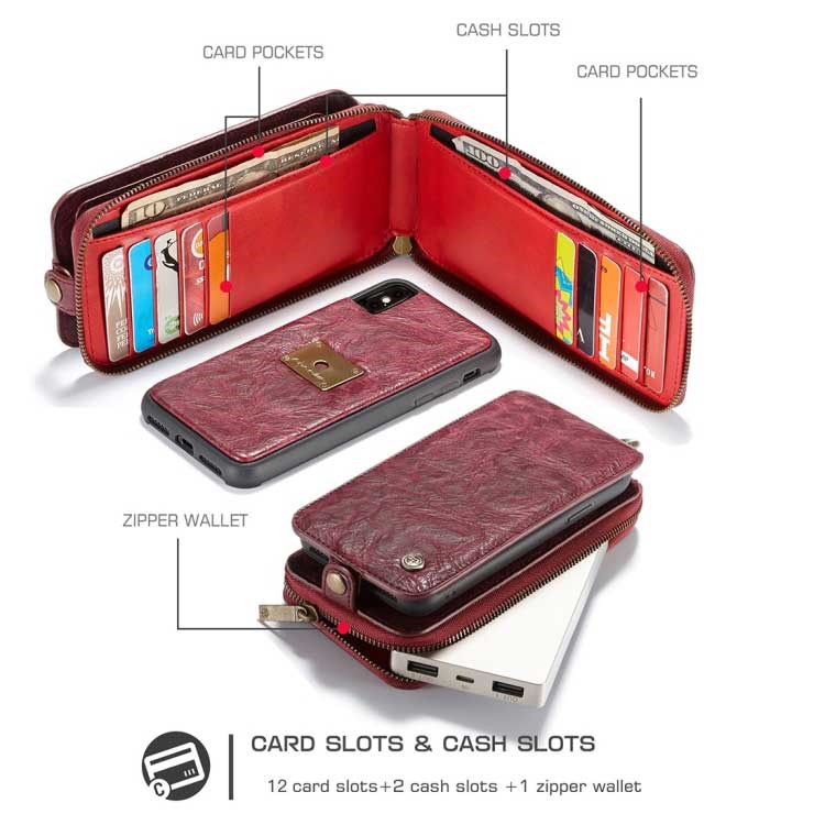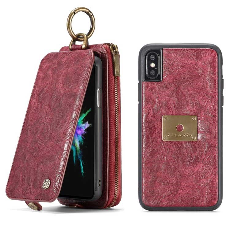 CaseMe Premium Leather Wallet with Magnetic Cover for iPhone X / iPhone Xs - Red