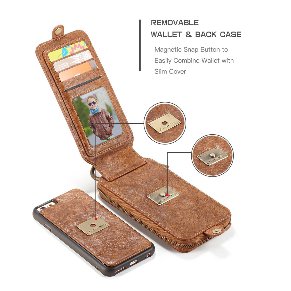 CaseMe Prime Leather Wallet with Magnetic Cover for iPhone 6 / iPhone 6s. - Brown