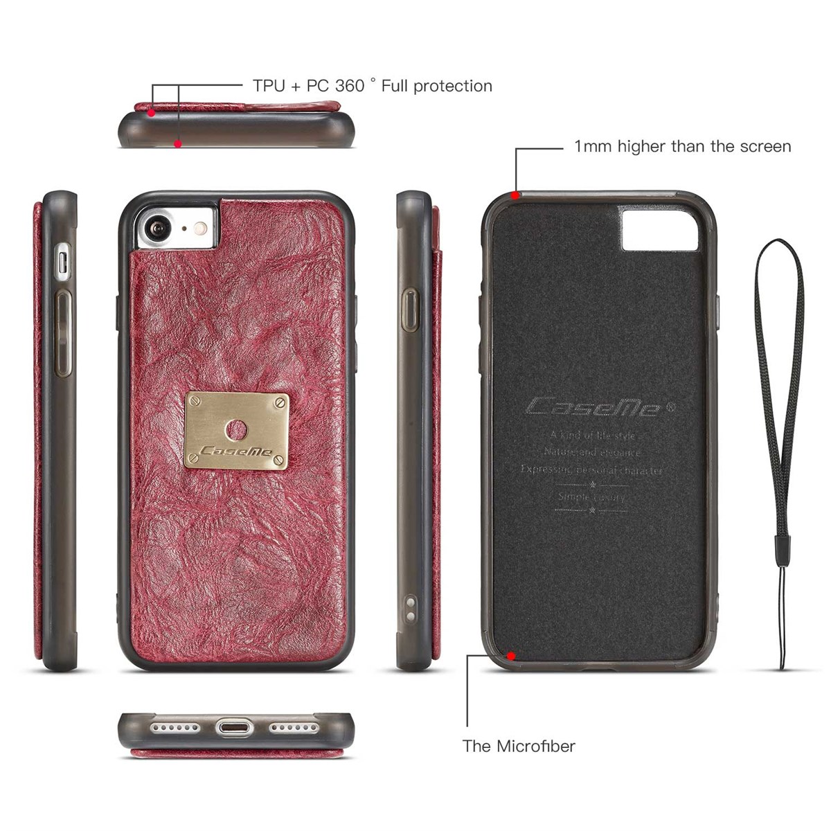 CaseMe Soft Leather Wallet with Cover for iPhone 7 / iPhone 8 - Red