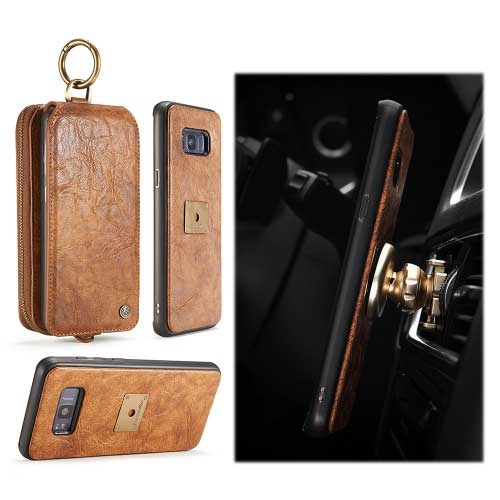 CaseMe Stylish Wallet in PU Leather w / Magnetic Cover in Plastic for Samsung Galaxy S8 - Brown