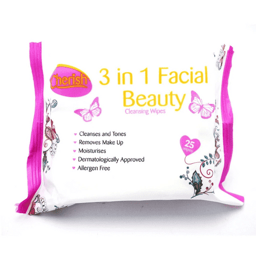 Cherish 3-In-1 Facial Beauty Wipes - 25 pcs