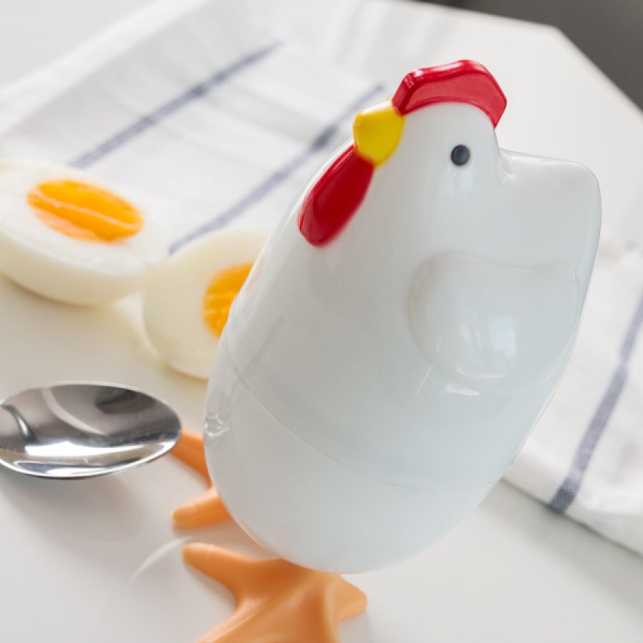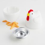 The sweet egg cooker is for putting in the microwave and will be decorative on the breakfast table. You can get your egg cooked easily and quickly with Chick Egg Cooker in the microwave.