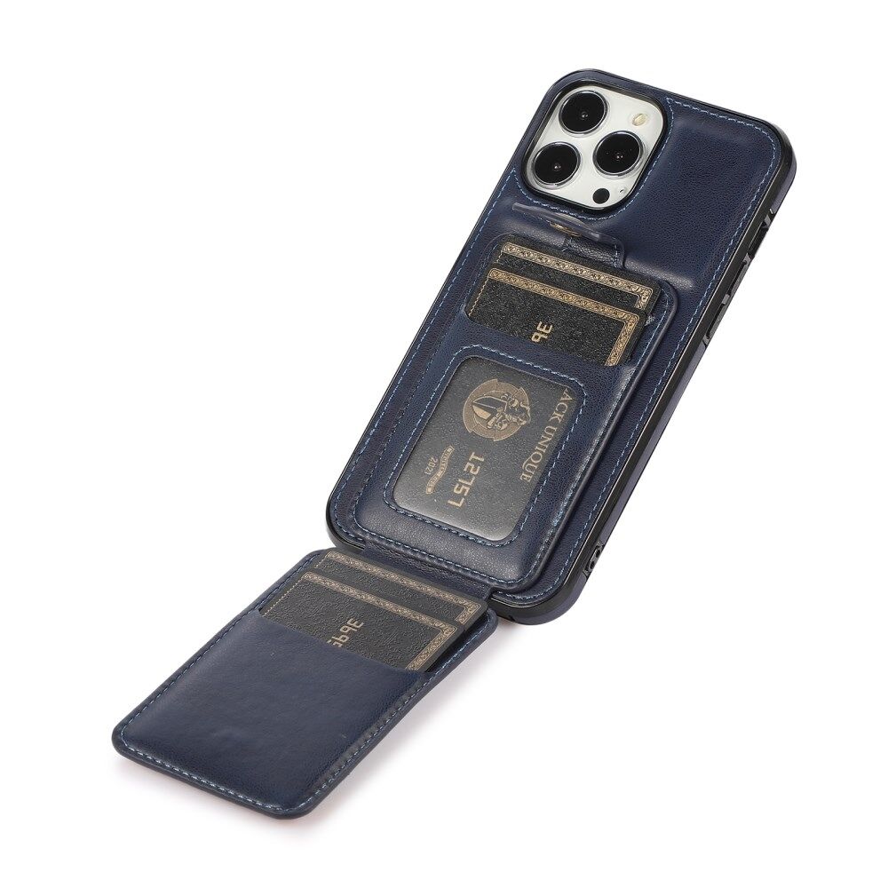 Classic Delicate Leather Vertical Flip Card Pocket Design Phone Case with Kickstand for iPhone 13 Pro 6.1 inch - Blue