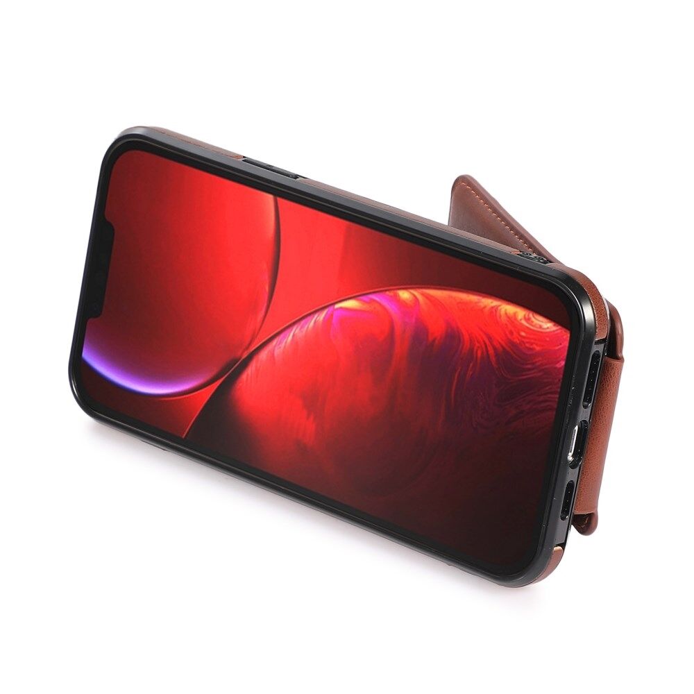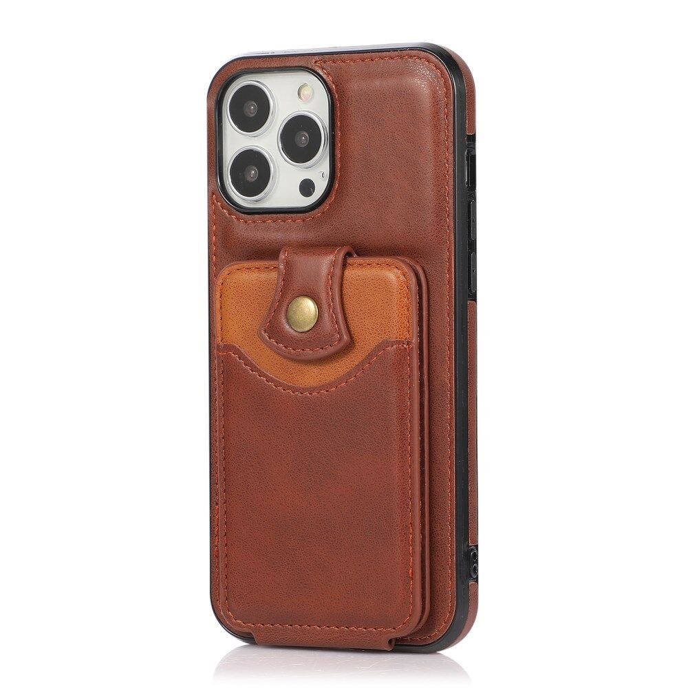 Classic Delicate Leather Vertical Flip Card Pocket Design Phone Case with Kickstand for iPhone 13 Pro 6.1 inch - Brown