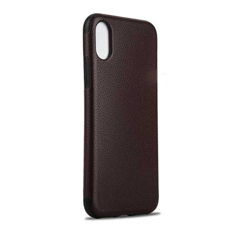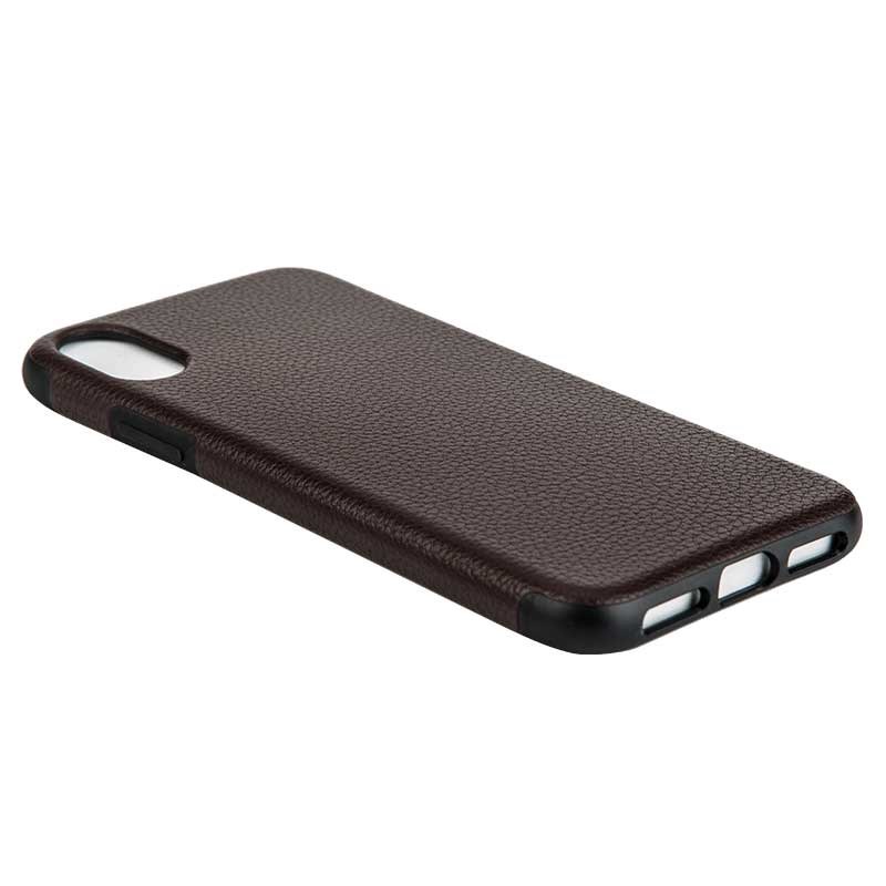 A design with leather look surface and black markings on the edges. The case feels good in the hand and protects your iPhone X from scratches and bumps.