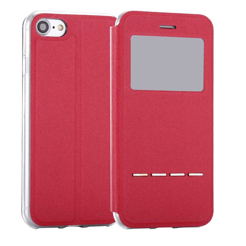 Clear View Flip Cover with Call Function for iPhone 7 / iPhone 8 - Red