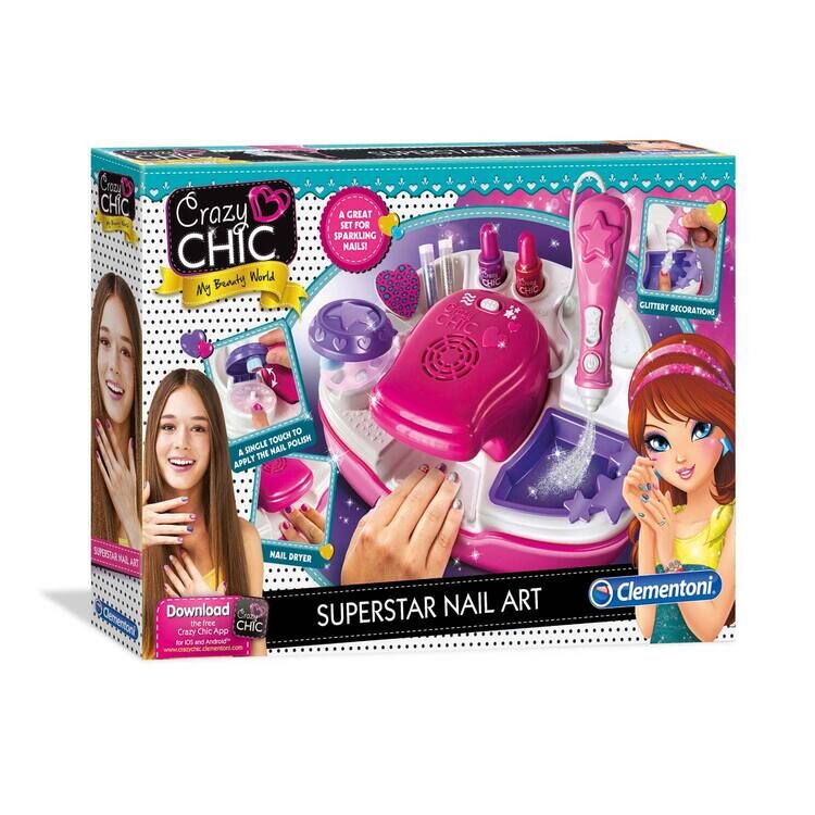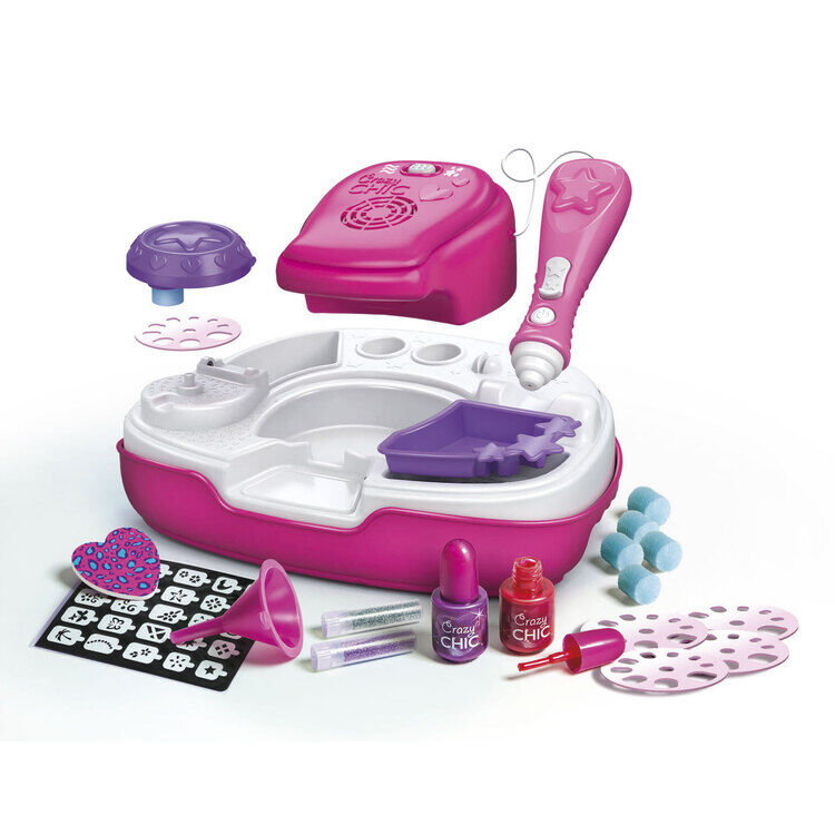 - The set includes the latest collection of Crazy Chic nail polishes, a handy decorating pen, lots of stencils and super-glamorous glitter!