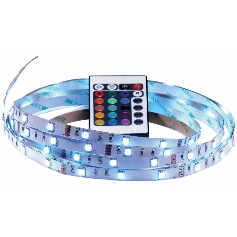Create light and color in the room with this multi-colored LED ribbon. A 2 meter long LED strip with 16 colors and self-adhesive backing. The LED band is flexible and is ideal for attaching to the back of your TV, in your showcase or right where you think it fits in your home. The 24-key remote control can change the brightness, and you can choose one of the many colors to suit the mood of the evening.