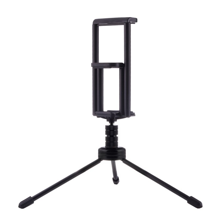 Tripod stand with two adjustable holders for your smartphone and tablet. A unique design with a height of 14 cm.