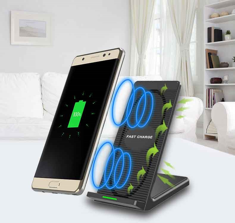 The wireless Qi charge stand supports charging for Qi compatible smartphones and fixed charging for smartphones which are fixed charging compatible.