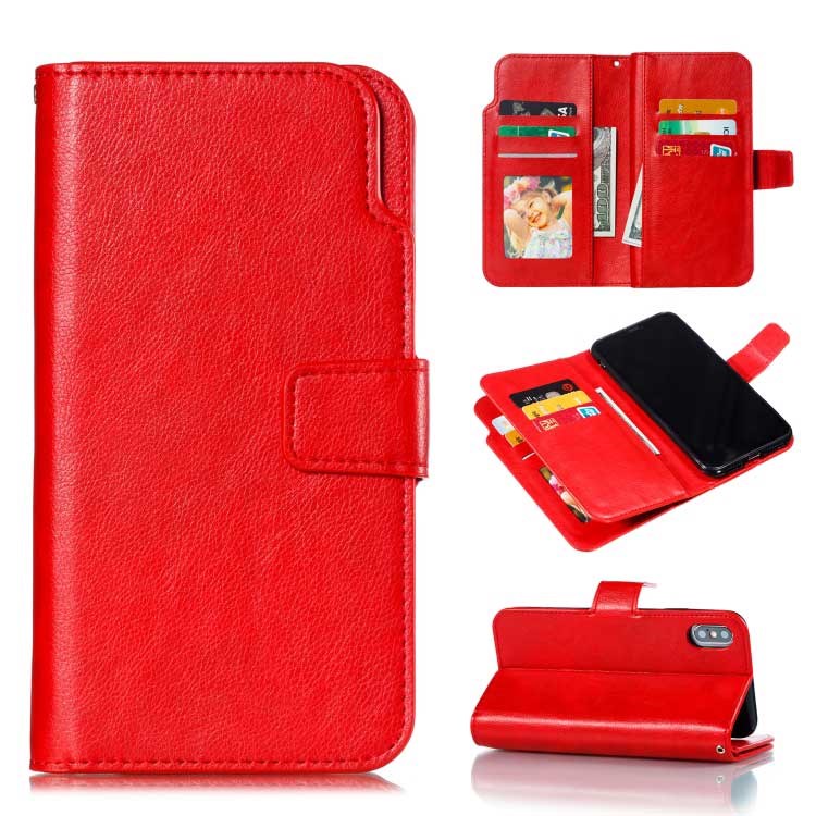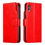 Crazy Horse Leather Case for iPhone XS Max with Card Holder - Red